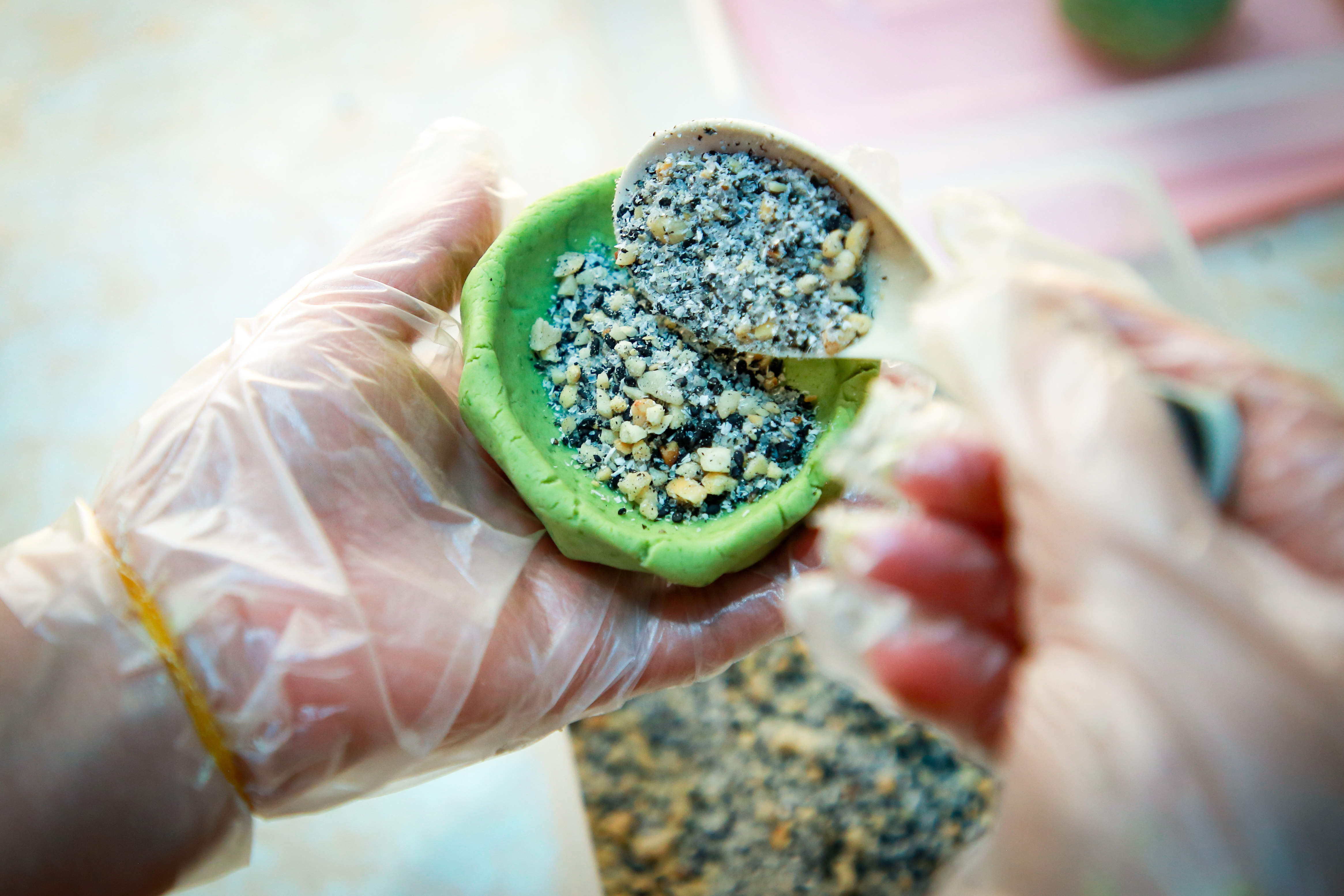 青青绿绿的艾糍,一口下去是软软糯糯的口感。 邹华彬 摄