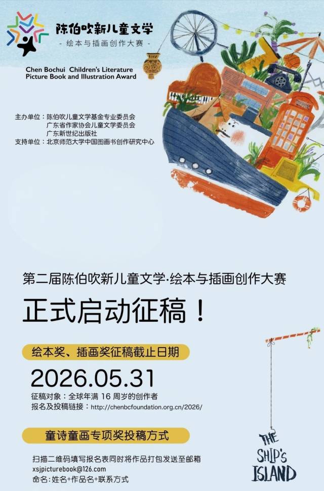 本次大赛由陈伯吹儿童文学基金专业委员会、广东省作家协会儿童文学委员会、新世纪出版社主办,面向16岁以上创作者设有绘本组、插画组,面向16岁以下青少年则设有童诗童画专项组。