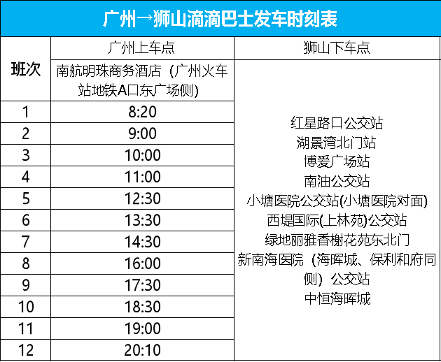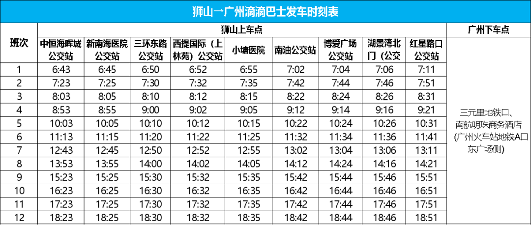 每天12班车,新增三元里地铁A1口下车点。