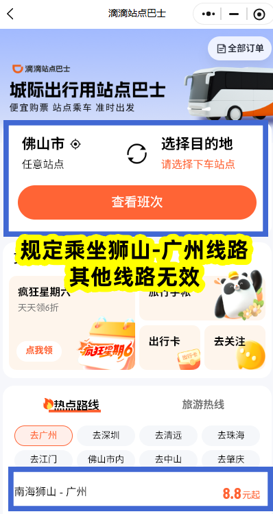 注:此活动限定狮山往返广州滴滴站点巴士