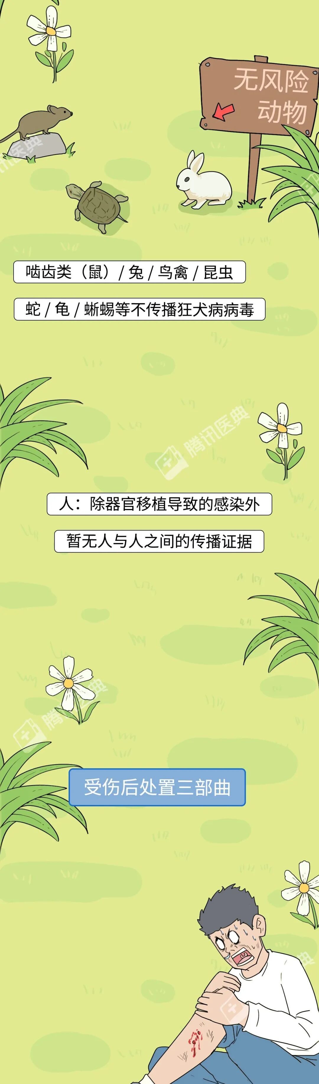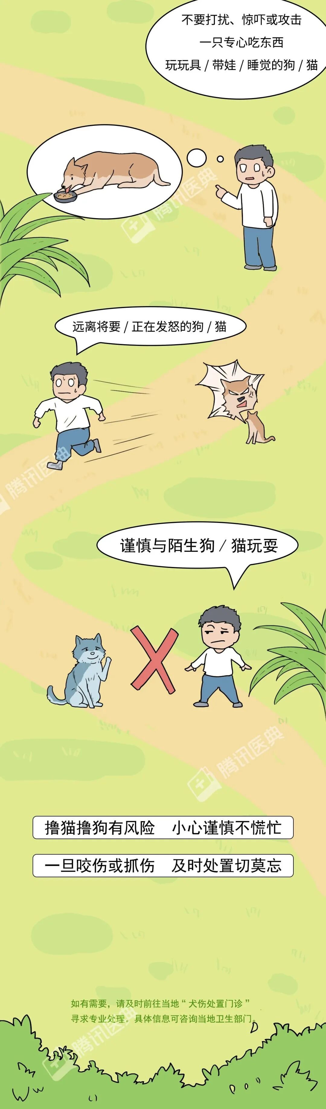 审核专家:李侗曾 首都医科大学附属北京佑安医院感染综合科主任医师 参考文献 1.常见动物致伤诊疗规范(2021年版).国家卫健委办厅. 2.狂犬病预防控制技术指南(2016版)[J]. 中华流行病学杂志, 2016, 37(2):25. 3.狂犬病暴露预防处置专家共识.中华预防医学杂志, 2019, 53(7):668-679. 4.WHO. Want a friend? Be a friend! The guide to pet care and bite prevention[J]. 2015. 5.WHO. WHO expert consultation on rabies: third report. 2018. 6.美国疾控中心官网.https://www.cdc.gov/features/dog-bite-prevention/