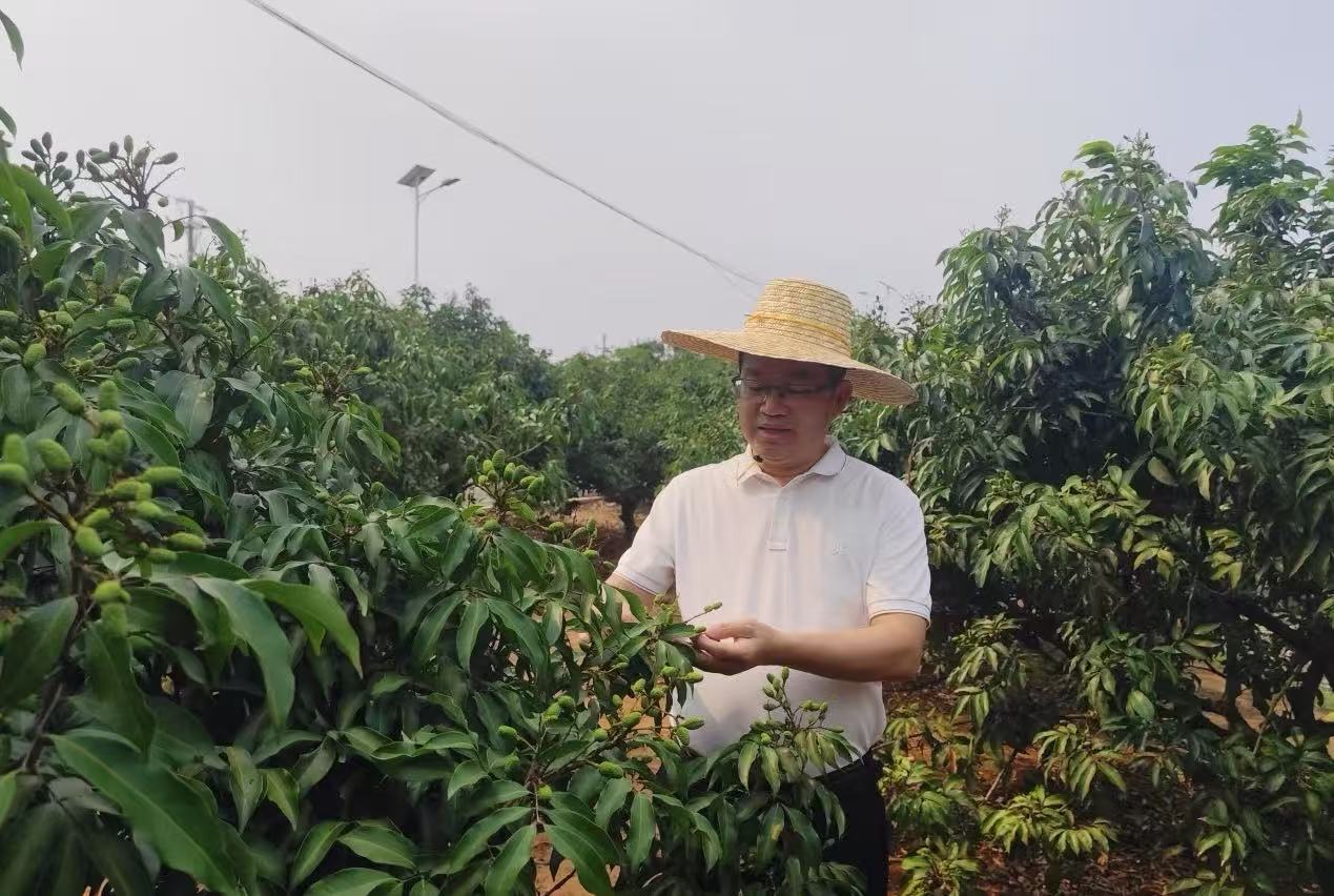 湛江市遂溪县乌塘镇党委书记洪文泽在田间查看遂溪乌塘仙品荔长势