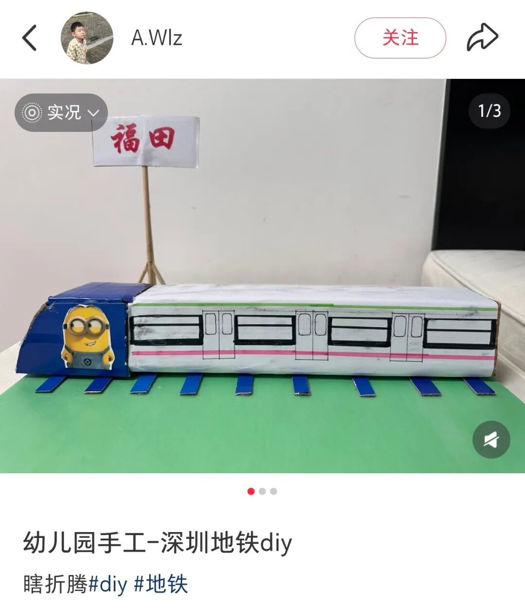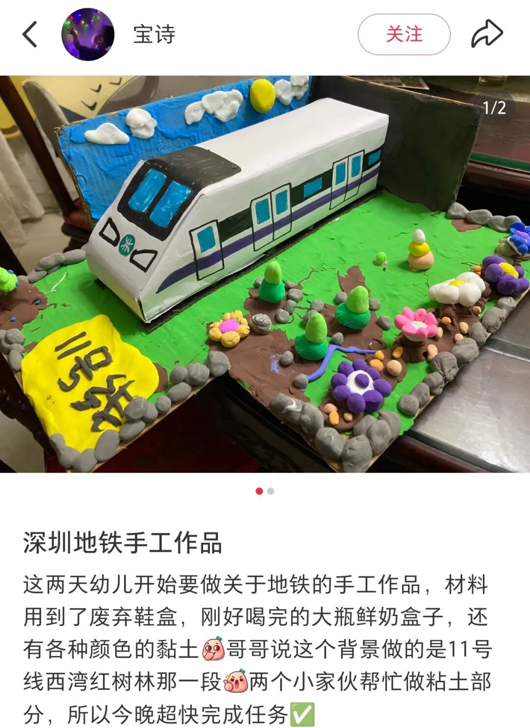 前有小学生 手搓深圳地铁线网图 后有网友爆改 杯垫版地铁积木站台 “万物皆可搓成深圳地铁” 全网深圳地铁手搓系列 看人类幼崽实力演绎 全网如何“卷”出 深圳地铁“隐藏周边” 当酸奶盒、旧鞋盒遇上超轻黏土 会发生什么? 幼儿园的粉丝给出了答案: 一条微缩版深圳地铁11号线! 幼儿园里的“地铁研究中心” 画出了地铁的“前世今生”? 这很深圳! ▲来源:小红书网友@LL饱饱 来源:小红书网友@小情绪 一针一线“开”出一列车 网友@筠秭 “用爱发电” 二次元里的“我”与“你” 这是不是你心目中的6号线 把岗厦北画进漫画 让每天的通勤路变成动漫现场 打工人的早晨 从一个鸡蛋版地铁线网图开始 ▲来源:小红书网友@去冰少糖 团团邀请你 晒出自己的“手搓”地铁 评论区等你来