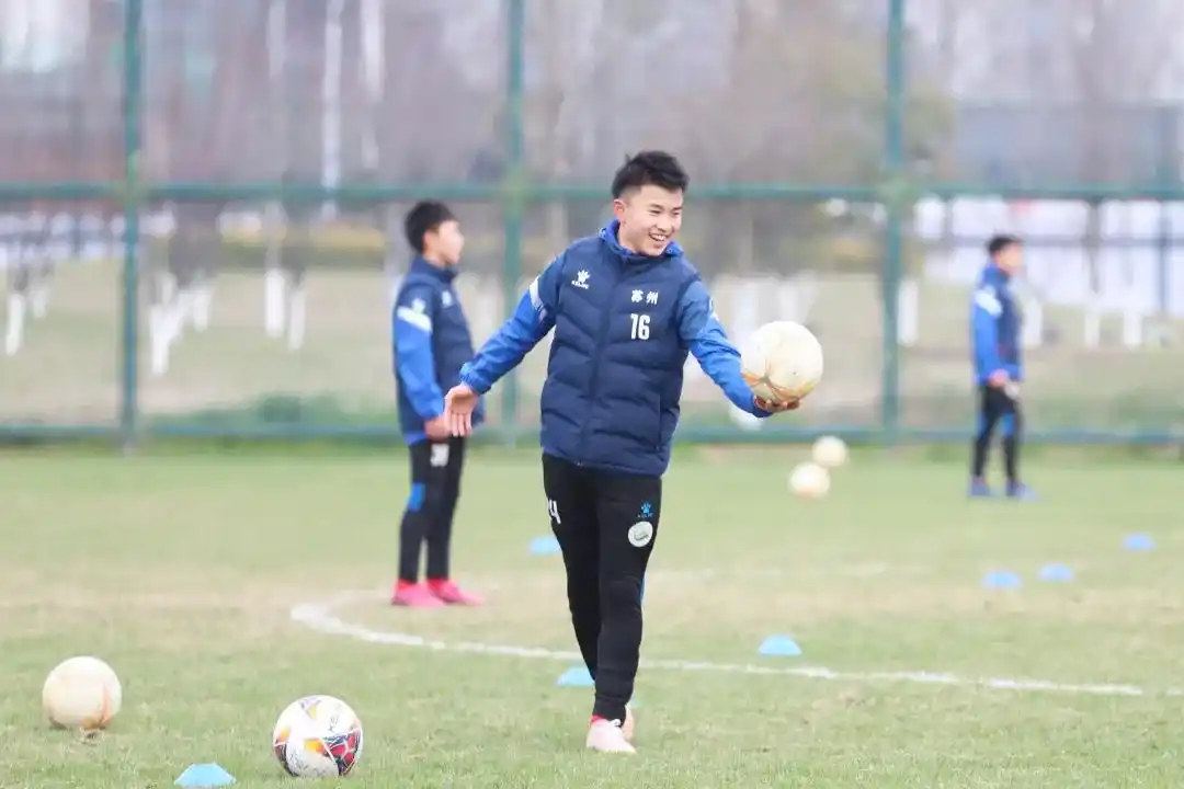 上赛季打入联赛最快进球的苏州队小将寇程,就出自苏州市太湖足球运动中心。图为其在青训中心训练资料图