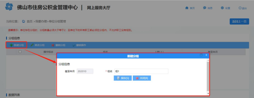 注意: 分组名称组名只能由中文字符、数字、大小写字母组成,最长 10 个汉字;且单位下的分组名称不得重复。