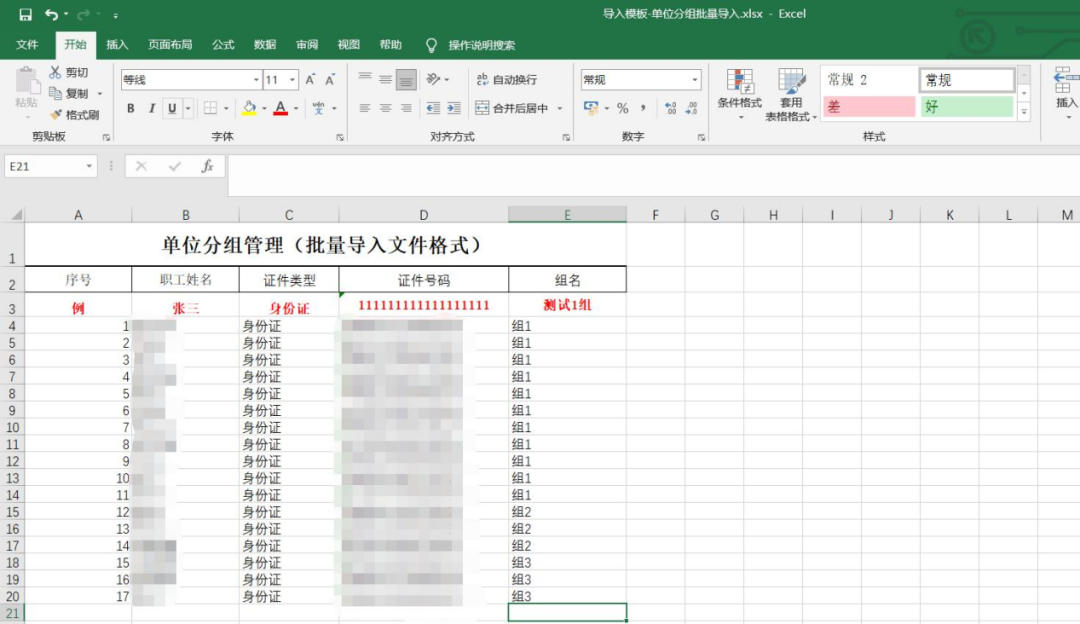 注意:“组名”一列的值,一定要在分组信息列表中已存在,否则导入会报错。