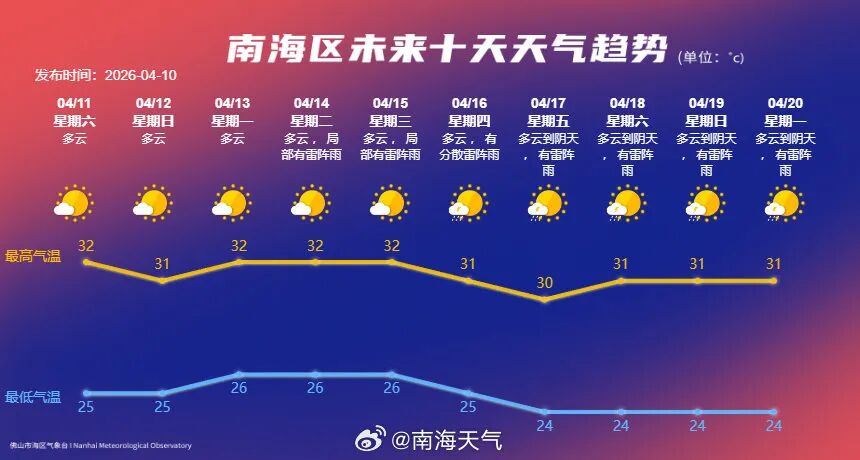 4月11日,多云,25-32℃;