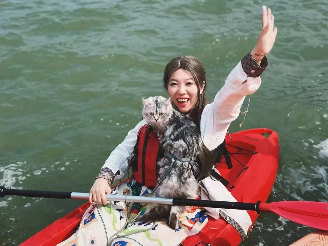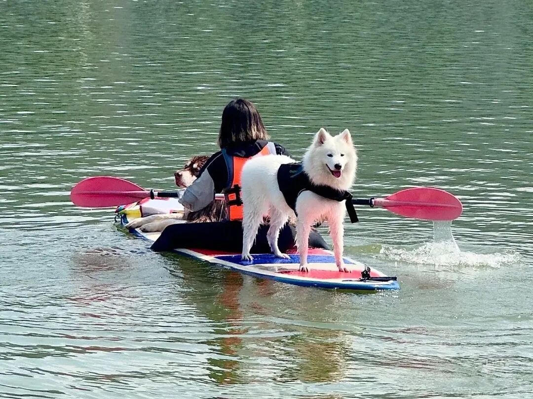 接着,铲屎官带我体验皮划艇,我可以直接上船,一起泛舟银湖,看湖光山色,微风拂过,治愈又惬意。