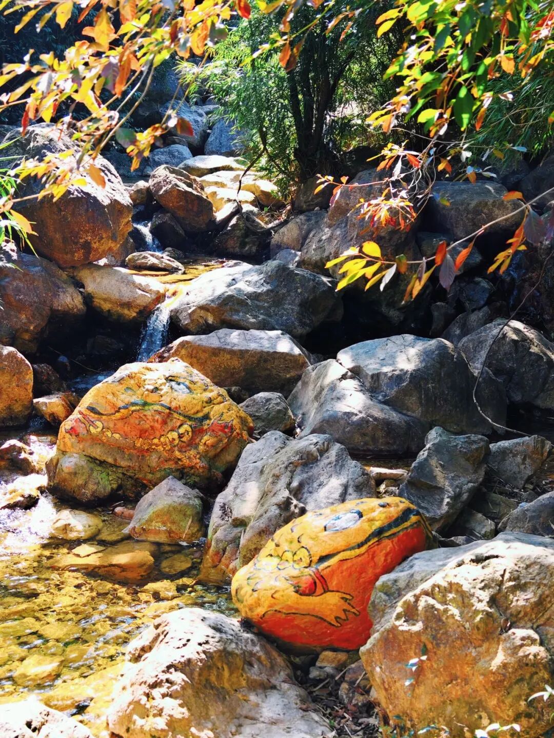 铲屎官牵着我跨过怪石、穿过溪涧,一路树荫遮蔽,凉爽又安心。