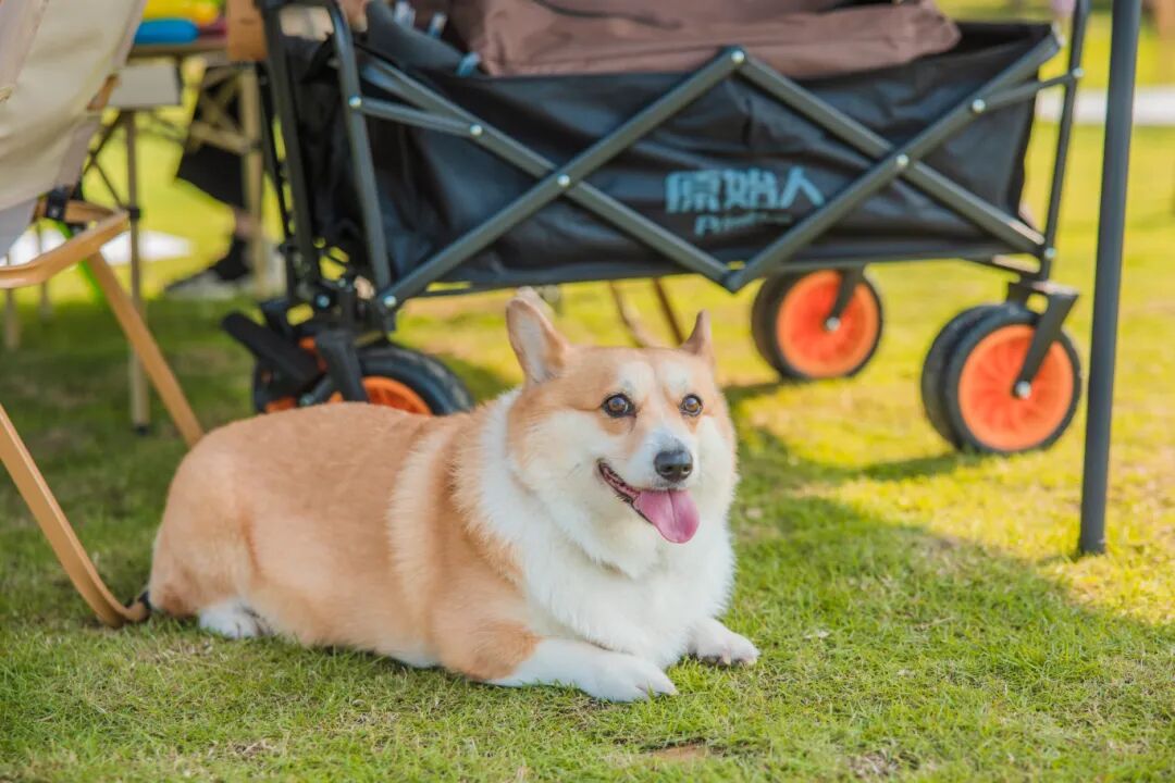 玩累了就在露营天幕下休息,陪着铲屎官安静放空。