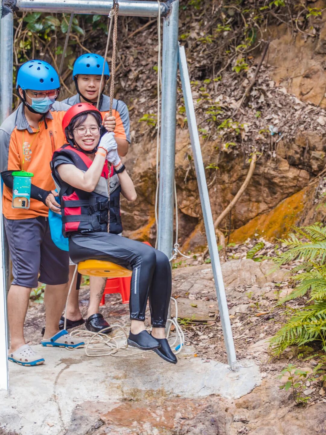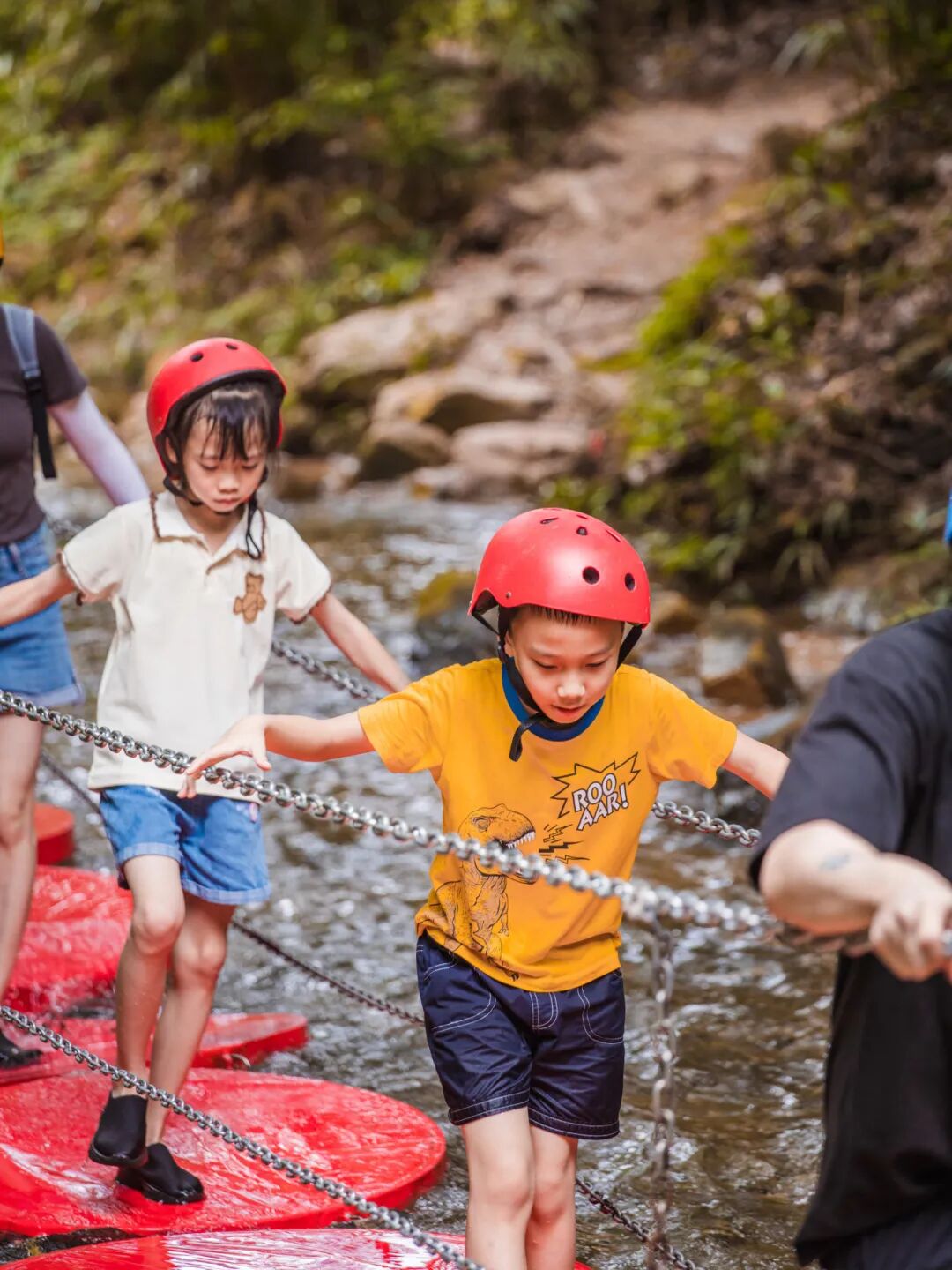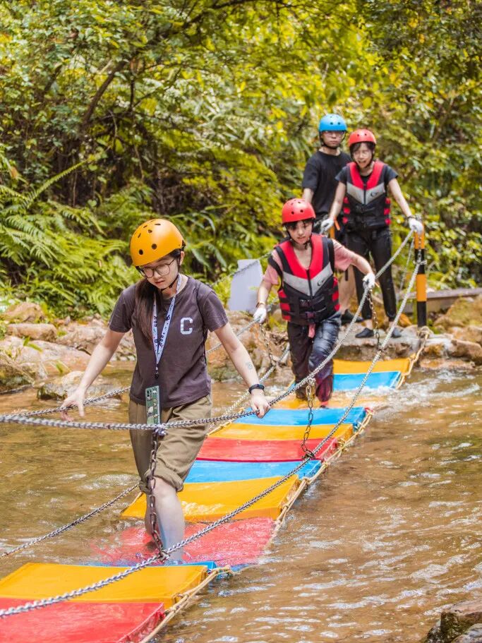 我们直接冲蓝线溯溪,全程1.28公里,12道趣味关卡,游玩约1.5小时。