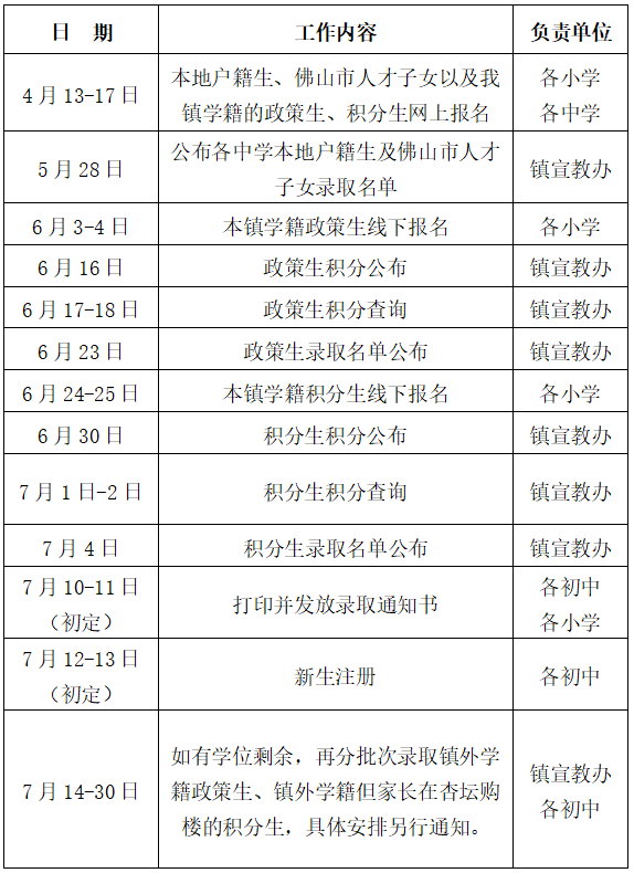 为使我镇2026年初中一年级招生工作规范、有序进行,促进全镇初级中学优质均衡发展,根据《广东省教育厅关于进一步规范普通中小学招生入学工作的指导意见》(粤教基〔2026〕1 号)、《佛山市教育局关于做好义务教育学校招生入学工作的通知》(佛山教基〔2026〕2号)、《佛山市教育局关于全面规范中小学招生工作的通知》(佛山教育〔2026〕7号)、《佛山市人民政府办公室关于印发佛山市非户籍适龄儿童少年入读公办义务教育学校实施办法的通知》(佛府办〔2024〕6号)、《顺德区教育局关于做好2026 年义务教育学校招生入学工作的通知》(顺教〔2026〕17号)、《佛山市顺德区科学技术局 佛山市顺德区教育局2026年关于受理高新技术企业工作人员子女入学的通知》(顺科发〔2026〕2号)等文件精神,结合我镇实际情况,制定本招生方案。
