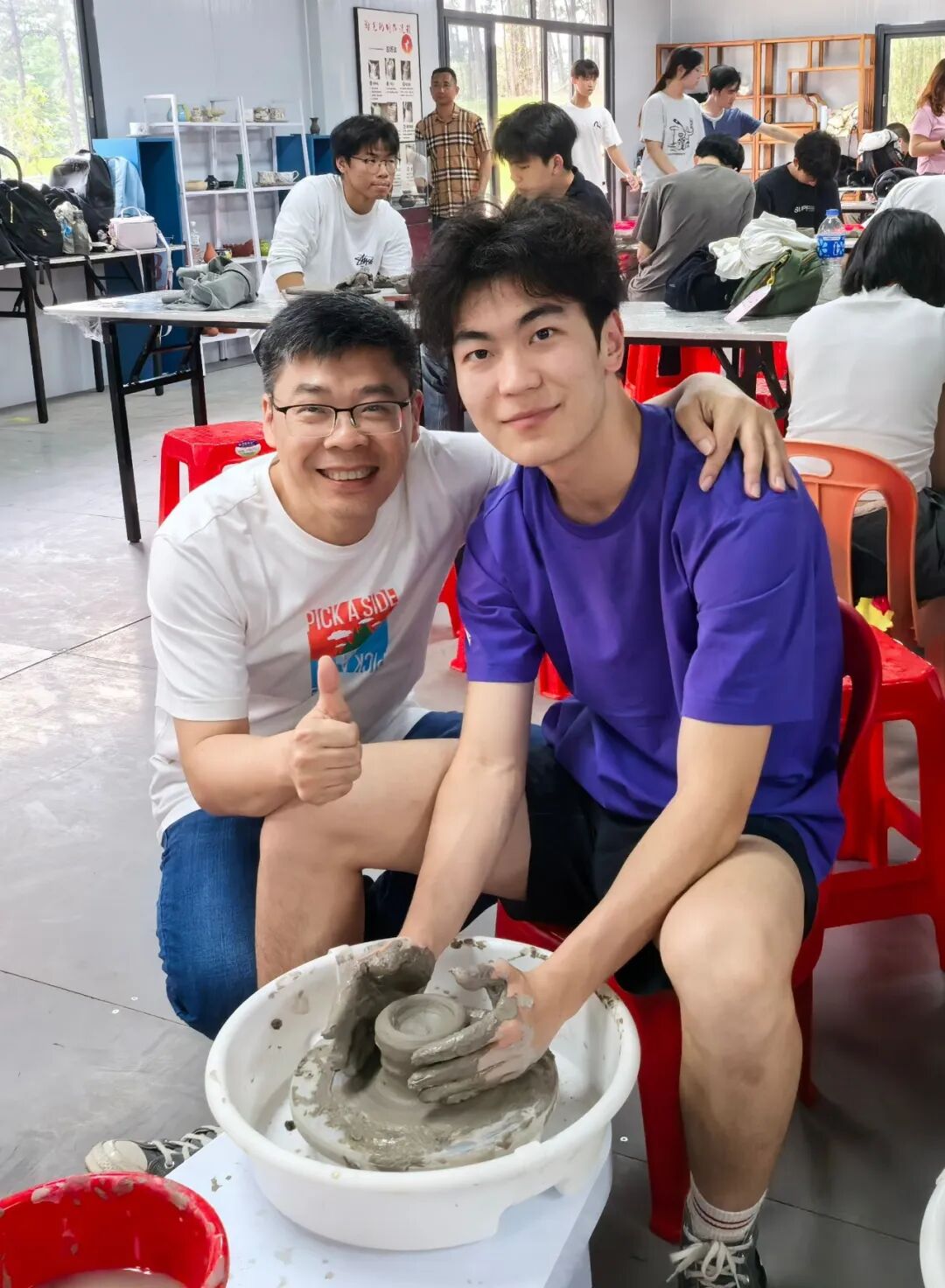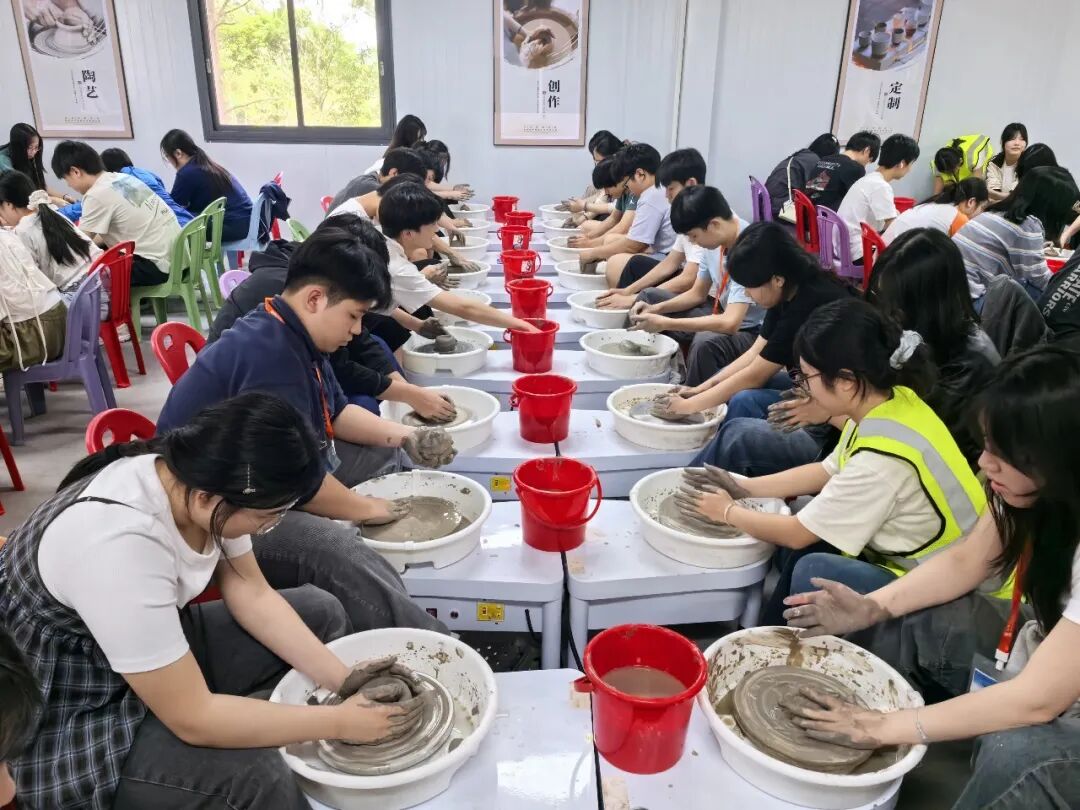 活动当天,香港汉华中学的一百多位同学深入了解高明唐代龙窑遗址的历史。在高明唐代龙窑烧制技艺传承人的指导下,同学们纷纷动手实践,体验陶艺制作的乐趣。从揉泥、拉坯到塑形,泥土在指尖流转,一件件稚拙而真挚的作品逐渐成形。大家还将自己创作的陶坯刻画上龙窑出土文物上的纹样,待烧制完成后,这份亲手制作的陶器将成为此行最独特的纪念。