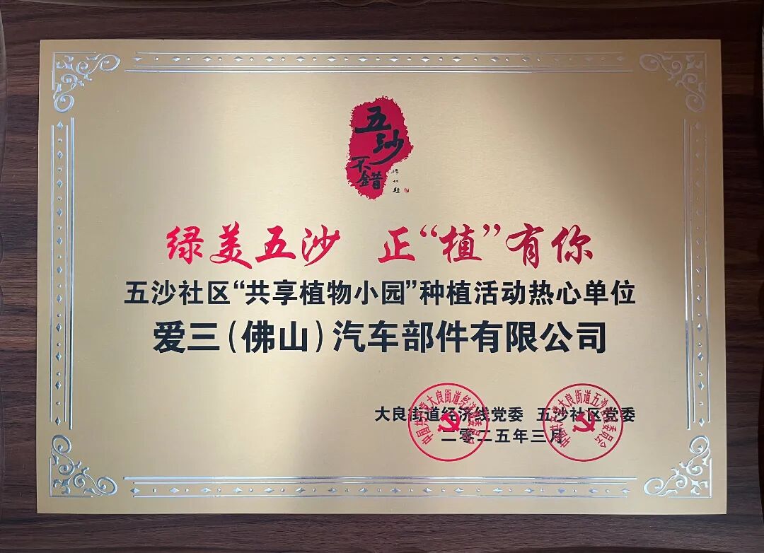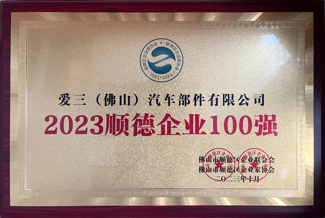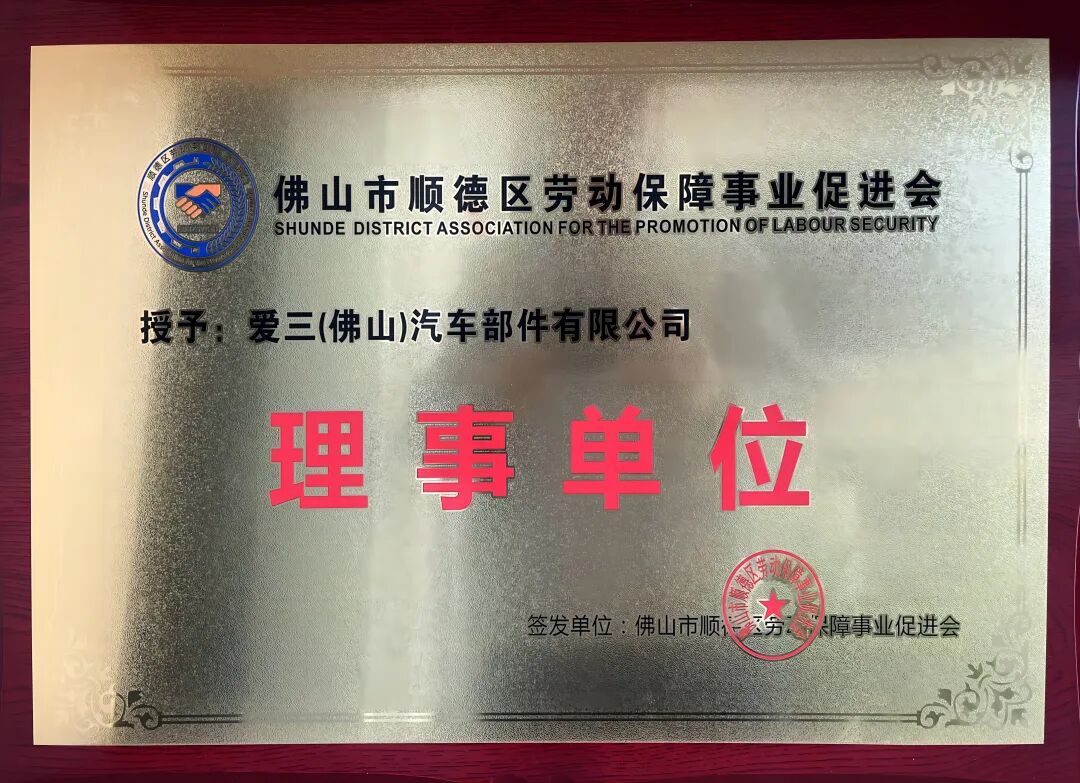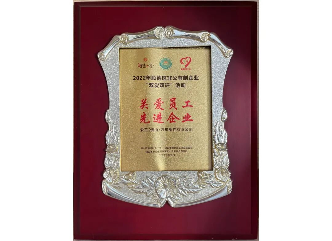 爱三(佛山)汽车部件有限公司(简称:爱三公司) 是爱三工业株式会社在佛山顺德投资设立的外商合资企业,成立于2004年5月,坐落于佛山市顺德区五沙工业园。 公司主要业务涵盖开发、生产经营汽车、摩托车用铸锻毛坯件、电子控制燃油喷射系统、汽车关键零部件滤清器、发动机冷水管外壳及其他零部件、生产用刀具、工具及设备。 公司主要产品 爱三公司始终秉持“以顾客至上之心创造产品;以智慧及技术实现高品质;尊重人性,营造生机勃勃的企业环境,以企业的繁荣及创造丰盈的环境,为社会作出贡献” 的经营理念,坚守企业社会责任,践行绿色低碳发展,热心公益事业,积极回馈社会。企业在经营发展与技术创新领域持续深耕,获多项高含金量荣誉,以实际行动助力社会可持续发展,彰显企业担当与时代使命。 凭借完善的健康管理体系与暖心职工关怀,爱三公司荣获了广东省卫健委授予的“广东省健康促进企业” 称号,成为行业健康发展标杆。依托深厚的技术积淀与综合实力,公司顺利通过广东省科学技术厅、广东省财政厅、国家税务总局广东省税务局联合认定,获评高新技术企业,并成功跻身2023年顺德企业100强,展现出强劲的区域竞争力与发展潜力。 在社会责任践行方面,爱三公司积极投身地方建设与公益事业,先后荣获“社区种植活动热心单位”、敬老节突出贡献单位等称号;同时心系山区教育,多次捐资支持校园建设与教育事业发展,以实际行动诠释企业责任与社会情怀。 在和谐劳动关系构建上,爱三公司作为顺德区劳动保障事业促进会理事单位,荣获顺德区总工会授予的“双爱双评” 先进荣誉,真正实现企业发展与员工成长同频共赢。 从省级专业认证到区域百强实力,从公益慈善到和谐人文建设,爱三公司以全方位、多层次的高质量发展实践,赢得了政府、行业与社会各界的广泛认可和高度赞誉。 分荣誉展示 公司部分荣誉展示