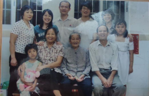 何简开一家人与助养女儿顺小羚和顺金锁的合照