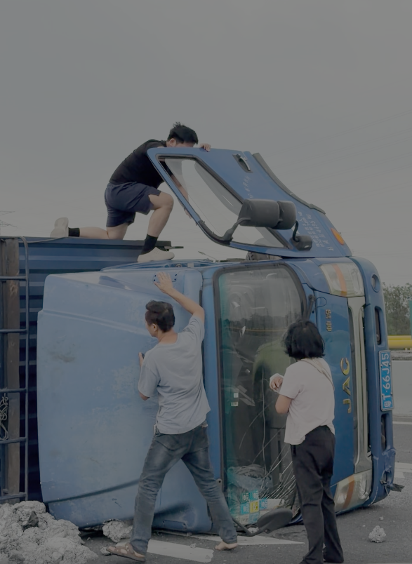 “吓我一跳!就在我们面前翻车了。”回忆起当时的场景,周冠贤仍心有余悸。然而,恐惧还没来得及占据大脑,一个本能的念头就冲了进去:车里的人有没有事?