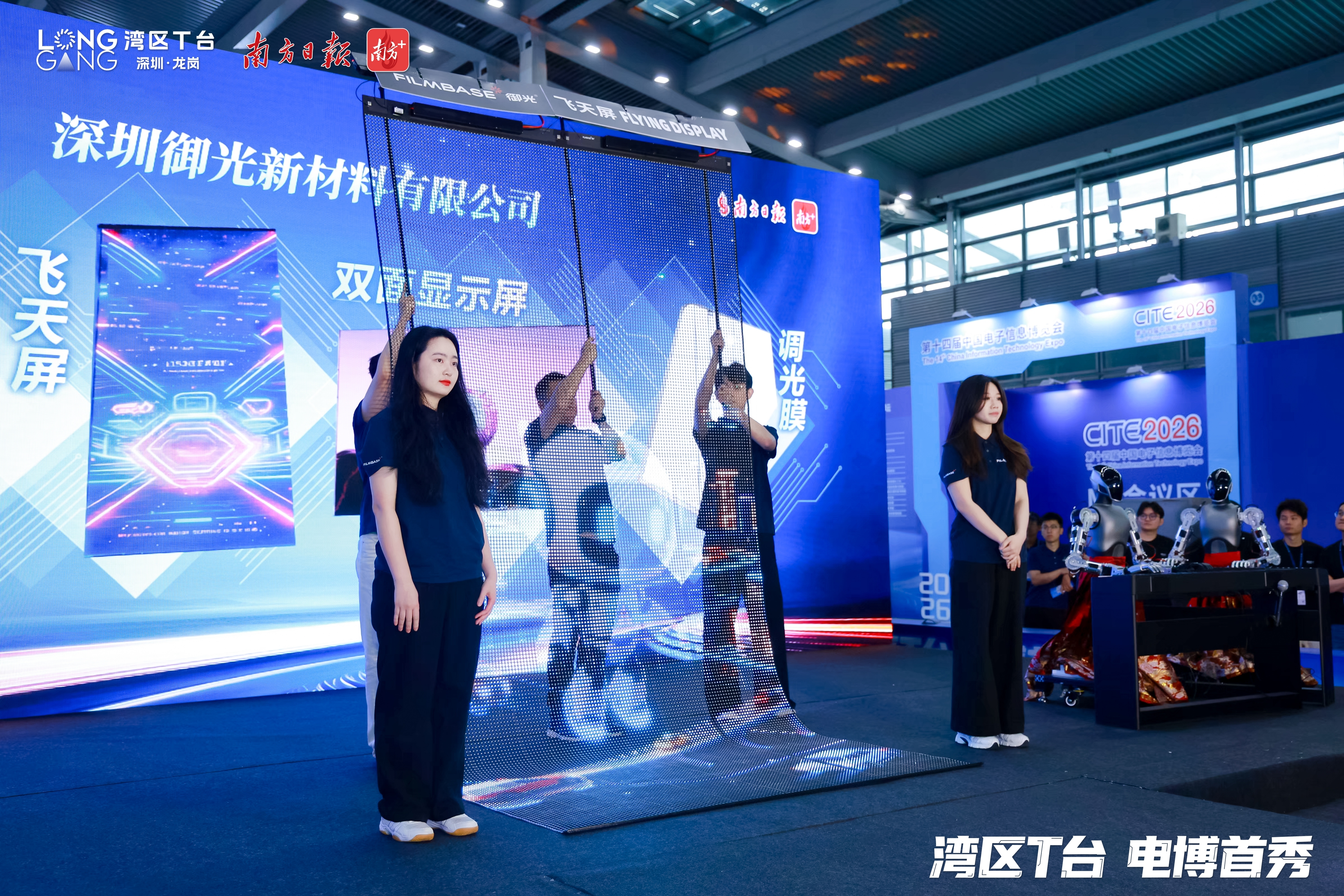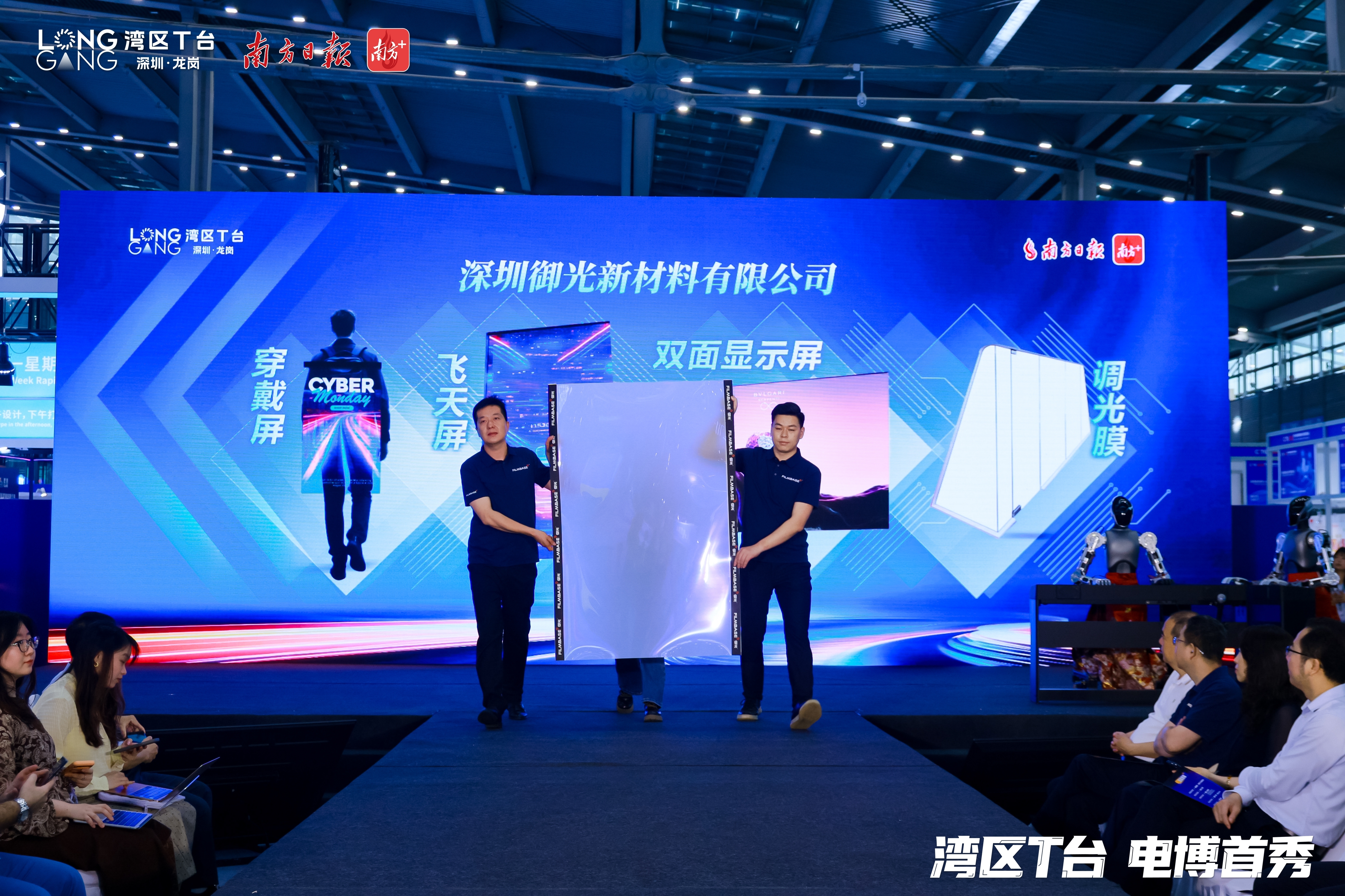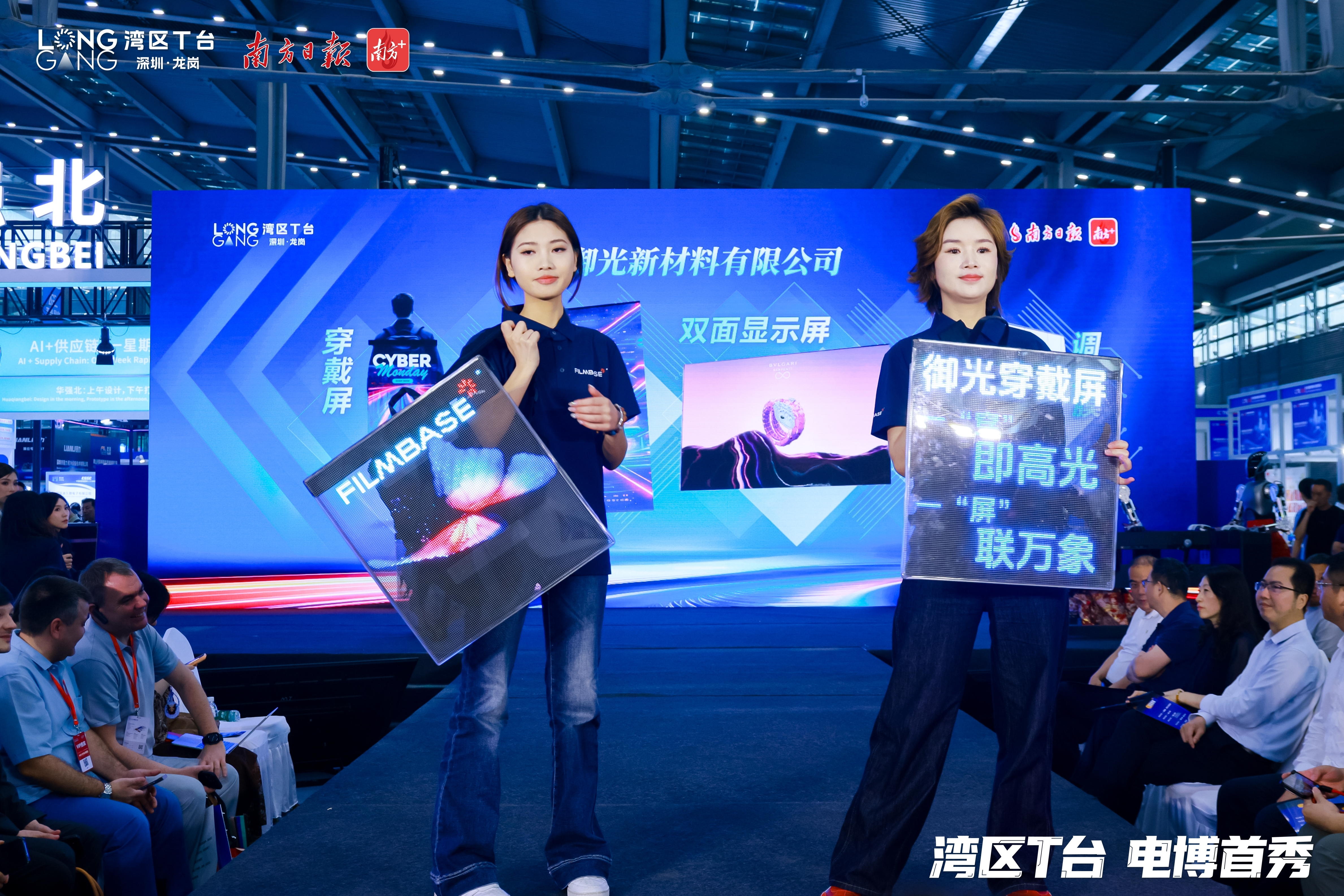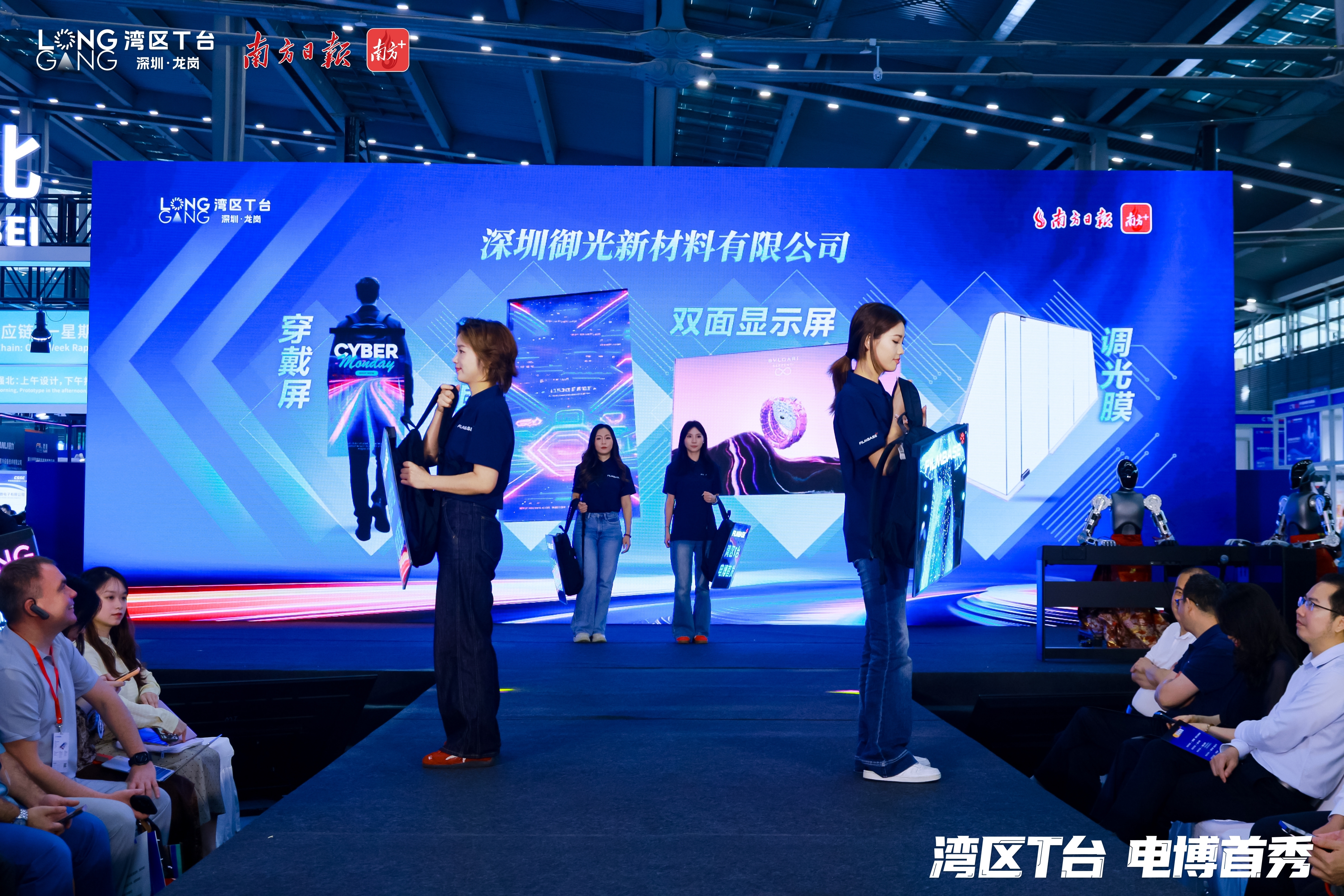 4月9日,在第十四届中国电子信息博览会的“湾区T台 电博首秀”活动上,深圳御光新材料有限公司(下称“御光”)携穿戴屏、飞天屏、智能调光膜等创新产品惊艳亮相,搭配外场AI互动3D透明屏,吸引众多客商驻足围观咨询,达成多项合作意向。