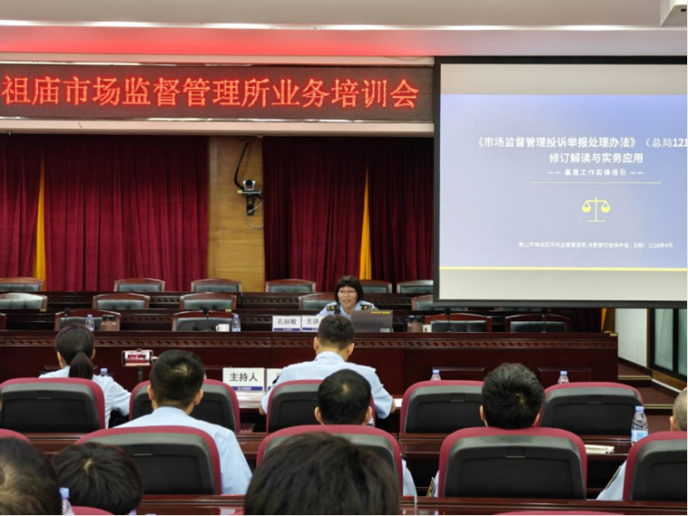 为全面提升祖庙市场监管队伍专业能力,更好地守护辖区市场秩序,4月10日上午,祖庙市场监管所组织召开2026年“市监大讲堂”第一期学习培训班。