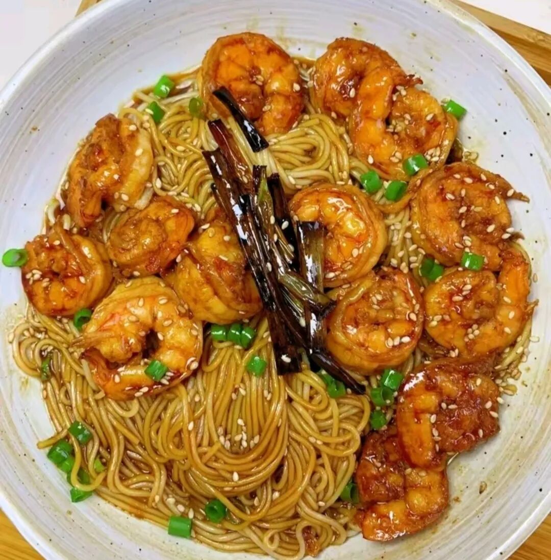 Q弹凤尾虾搭配劲道面条,淋上秘制葱油,香到舔盘!做法简单快手,早餐、午餐、夜宵都能安排,省时又美味,打工人必备家常主食~