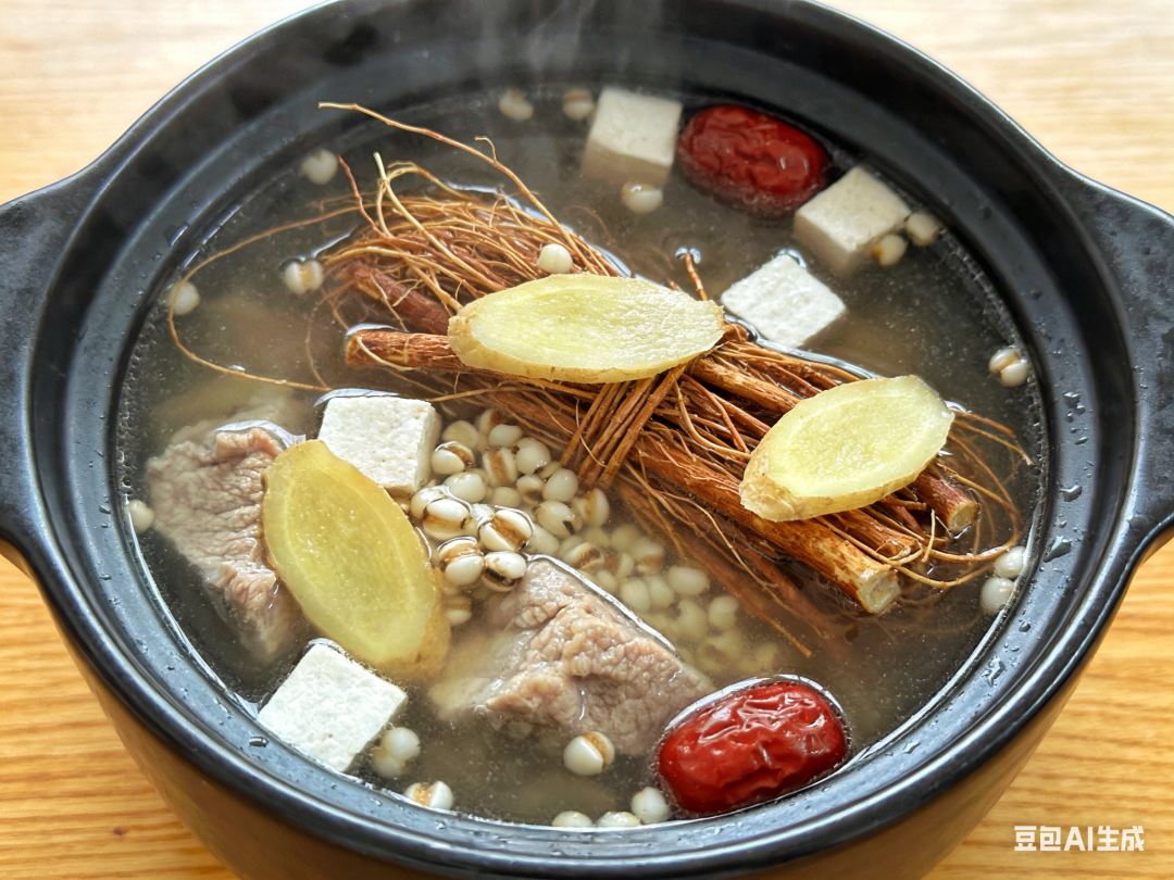 准备茯苓15g、山药15g、莲子15g、芡实15g、瘦肉/排骨250g、姜片2片、清水适量。肉类焯水去血沫,药材洗净,与肉、姜同入锅。大火煮开转小火煲1小时,加盐即可。四神汤能够健脾益气、利水渗湿、和胃止泻,祛湿不伤正气。适配脾虚湿重、大便溏稀、腹胀、食欲差者;老人、儿童、脾胃虚弱者;雨季长期困倦、四肢沉重者。