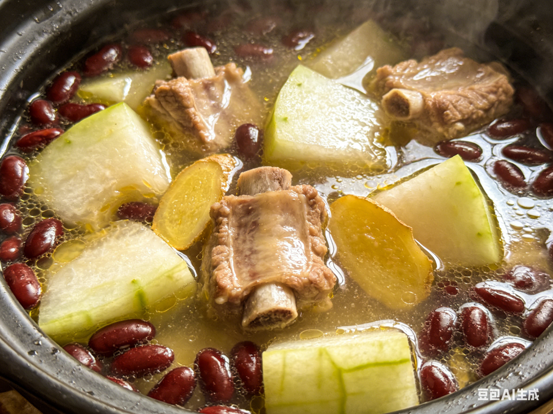 食材需要赤小豆30g、冬瓜500g(带皮更好)、排骨250g、姜2片。排骨焯水;赤小豆提前泡30分钟。先煮赤小豆与排骨40分钟,再加入冬瓜煮20分钟,加盐调味。对于水肿、下肢沉重、眼袋重、湿热偏重、口干、尿少、高血压、血脂偏高、体型偏胖的人来说,利水祛湿、清热解暑、消胀除肿,利尿效果明显。