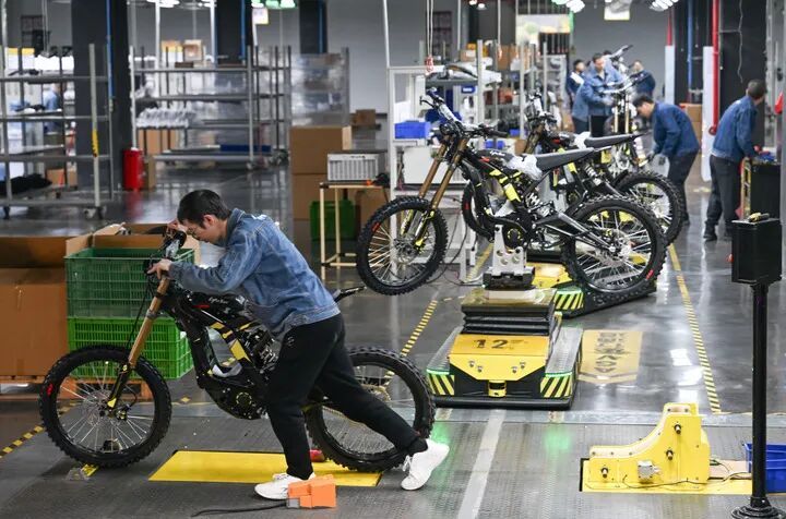 2025年12月,工人在重庆一公厂内组装新能源摩托车 陈诚 摄