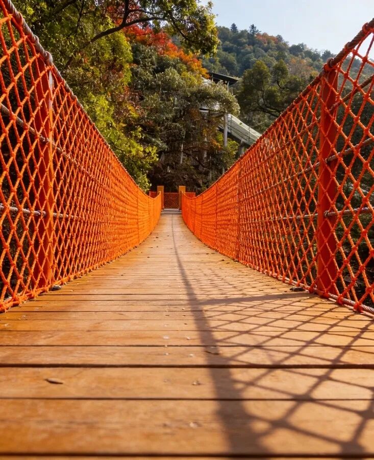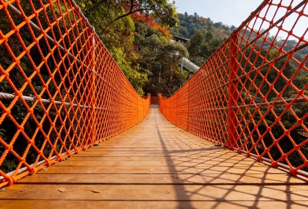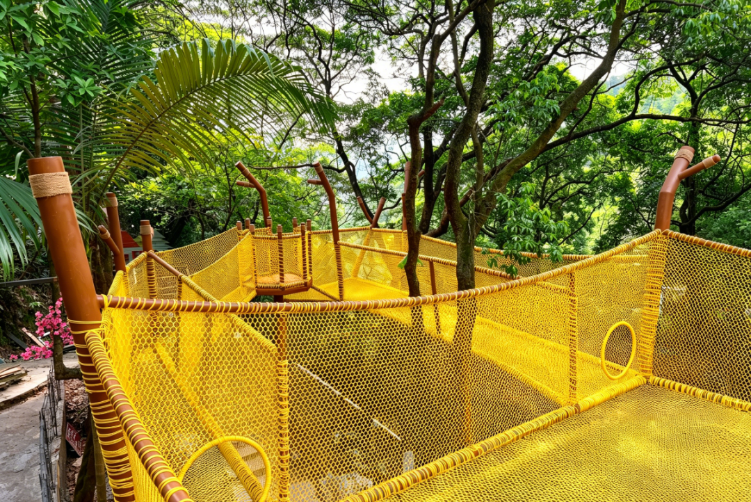 这张由高强度安全网编织而成的“魔网”,像一张巨大的蜘蛛网悬挂在古树之间。孩子们(以及童心未改的大人)可以在网上自由蹦跳、攀爬、翻滚,甚至躺在网中央,仰望天空,听风穿过树叶的声音。