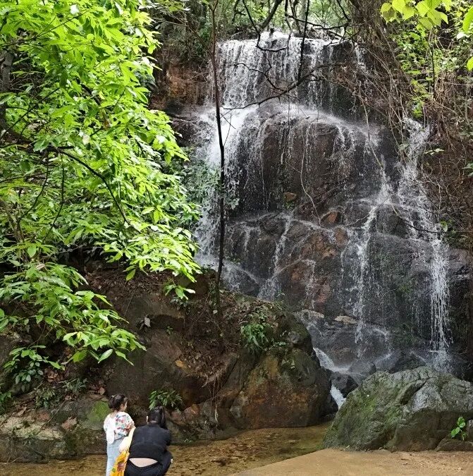 在半山古树环绕之处,有一方名为“好运连台”的观景平台。它正对着财神岭,脚下便是彩虹瀑布——站在这里拍照,便有“把好运带回家”的美好寓意。