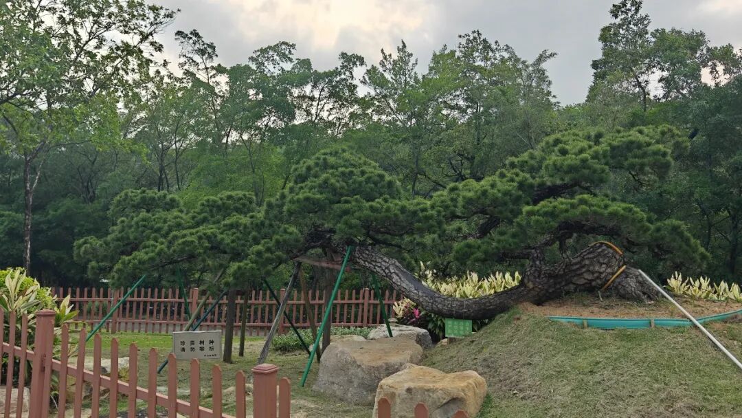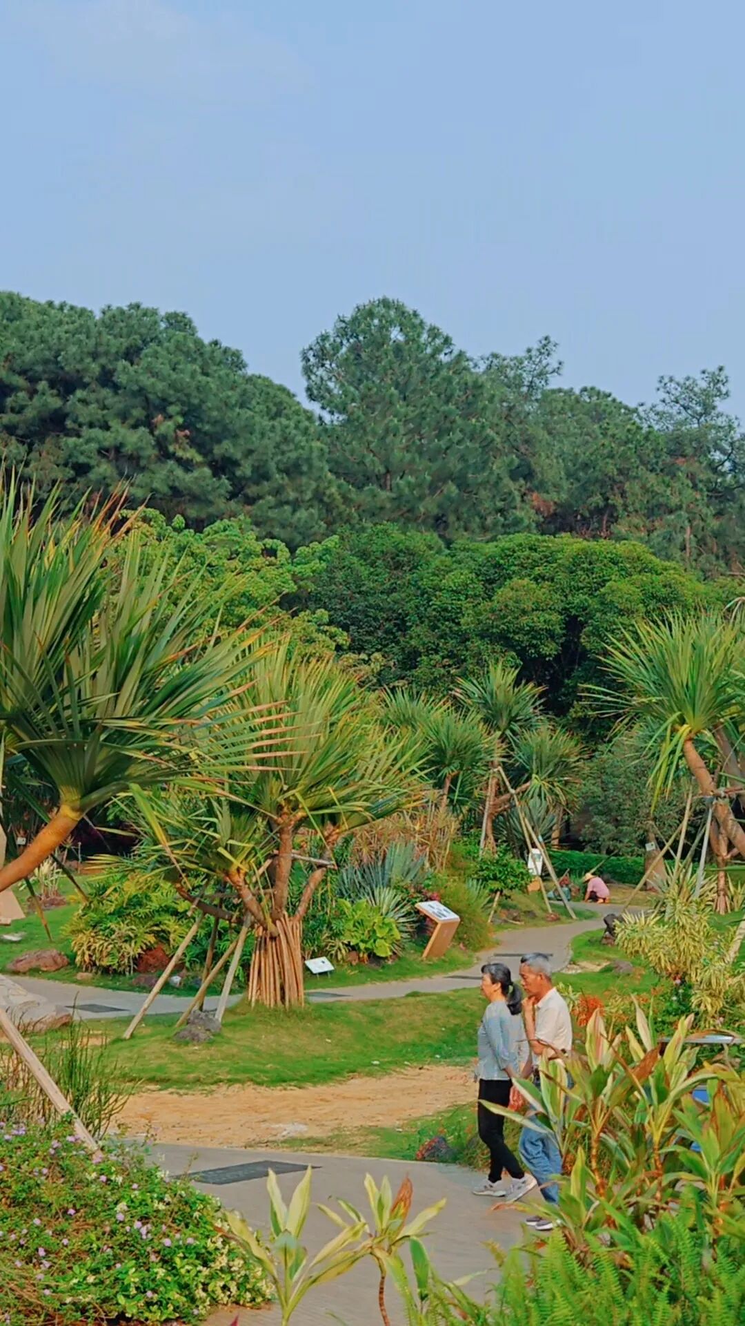 光棍草坪旁边的奇松园和龙血树园,更是藏着惊喜!56亩的奇松园,被通幽小径和听松小径串起来,130多棵造型黑松苍劲又出片,有的虬枝盘曲,有的挺拔俊秀,搭配景石和花草,走进去就像闯进了中式园林,随手一拍都是古风氛围感照片;松岩流水意境十足,或黄或粉的水生美人蕉亭亭玉立。旁边7亩的龙血树园更特别,海南龙血树、千年木等近30种奇树错落分布,搭配零星奇石,小众又出片;还有只长枝条没有叶子的“无叶怪”,整株不见一片叶子,它叫绿玉树,又称光棍树。在这里拍照发圈,绝对不撞款!