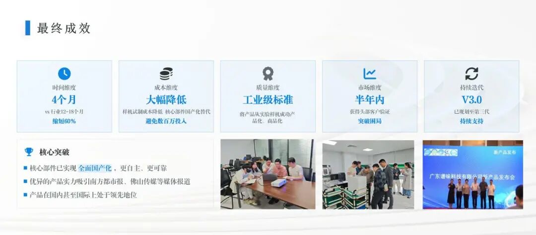 陈铁强在报告中直指行业核心困境:我国精密仪器科研成果转化成功率低,大量创新困在实验室、跨不过 “死亡之谷”,中小企业更是面临工程化能力不足、试错成本高、市场对接难等多重难题。而广东省精密仪器中试平台的核心价值,正是全链条兜底赋能,让企业 “敢试、试得起、试得好。报告以谱味科技为缩影,全面介绍了平台通过全流程支撑,助力企业快速实现产品国产化、市场化落地,用实战成果印证中试平台的核心赋能能力。