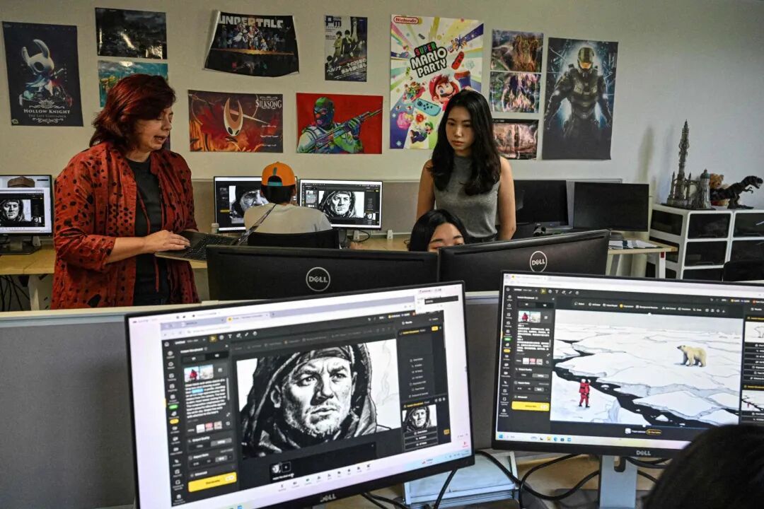 2025年10月9日,上海温哥华电影学院,老师正在讲授人工智能电影制作课程。(视觉中国 / 图)