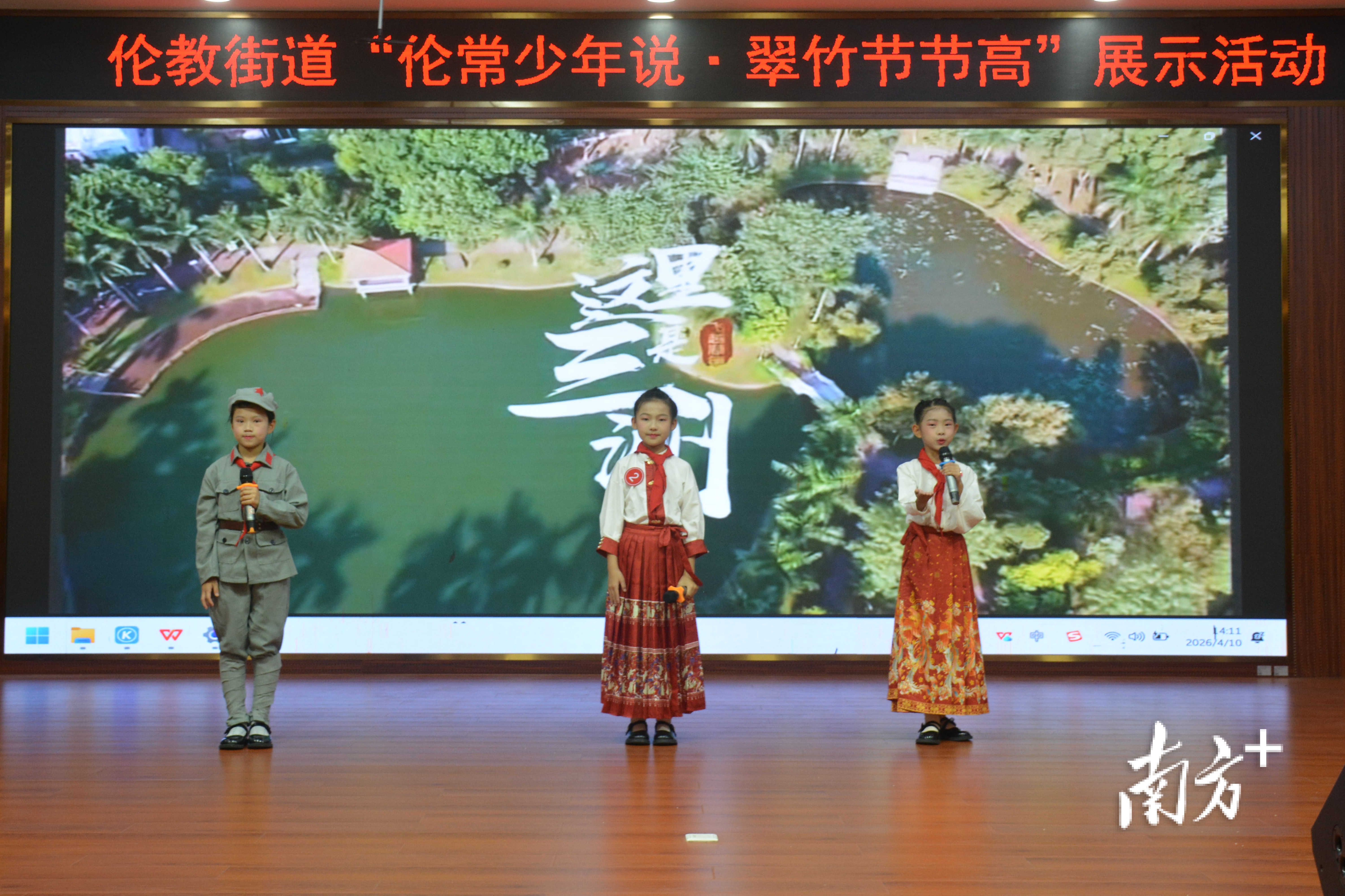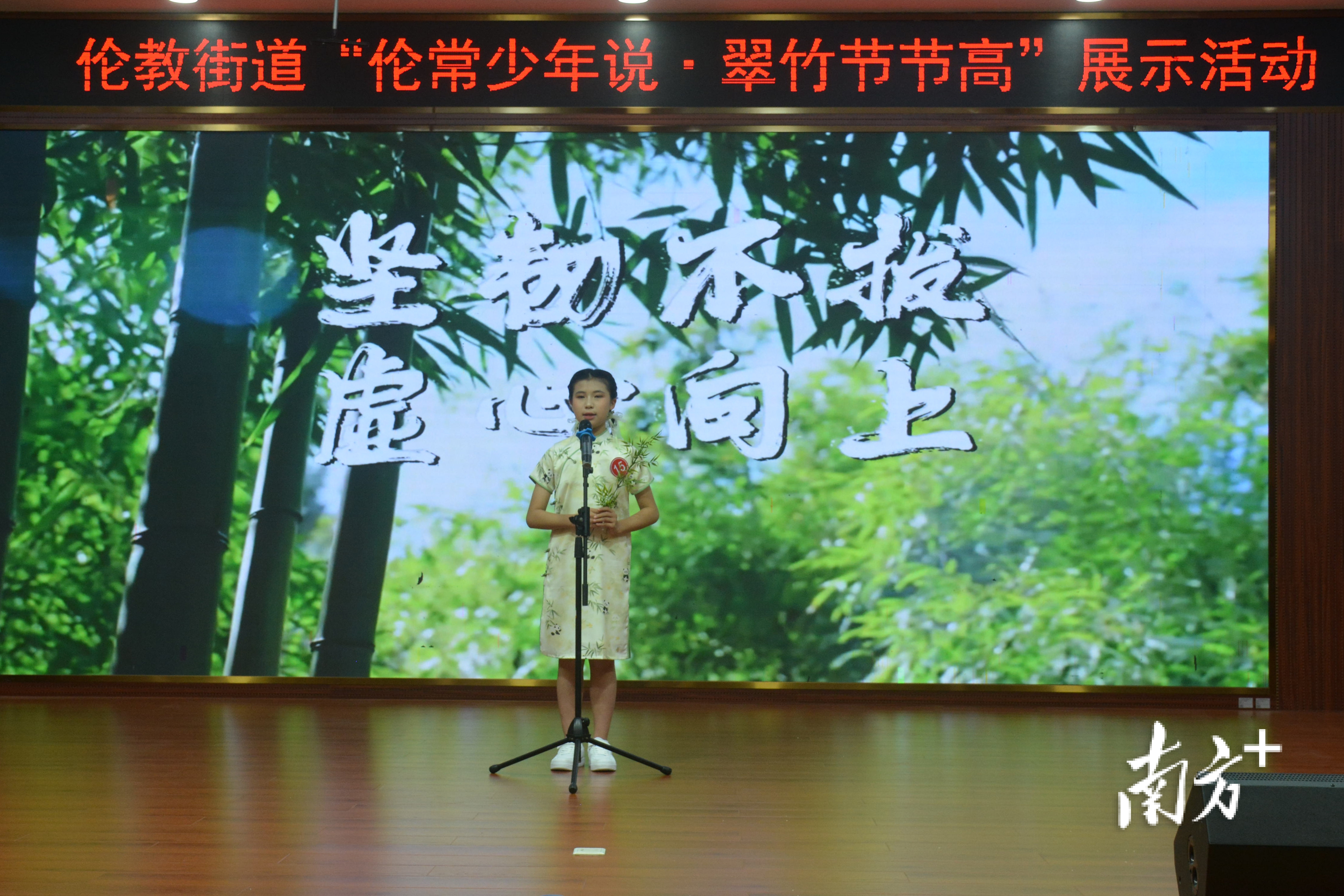 4月10日,佛山市顺德区伦教街道“伦常少年说·翠竹节节高”展示活动在荔村小学圆满落幕。来自全街道中小学的28个节目轮番登台,孩子们以演讲、朗诵、情景剧等形式,讲述伦教红色历史、非遗匠心、生态变迁与未来畅想,将“坚韧、虚心、向上”的翠竹精神融入一个个有温度的本土故事。