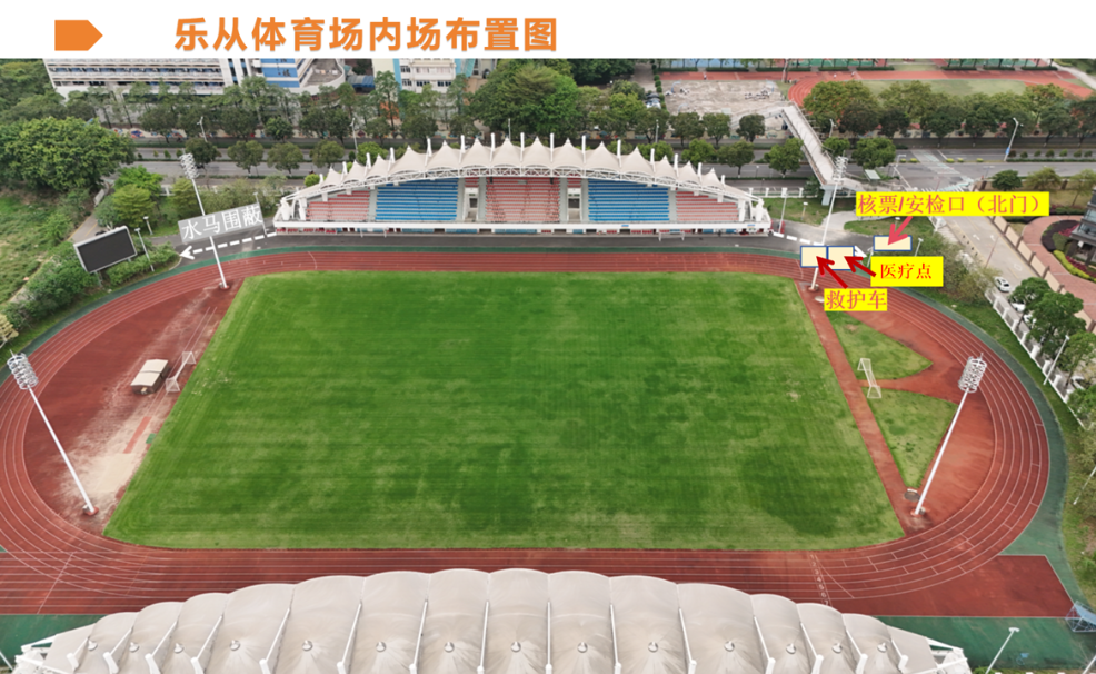 2、线上购买FIJ区门票的观众,请从乐从体育场【北门】安检口入场,凭“顺心伴小程序购票二维码”在验票处完成验票并领取纸质门票,随后进入西看台。