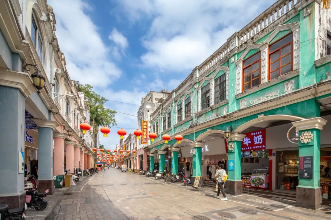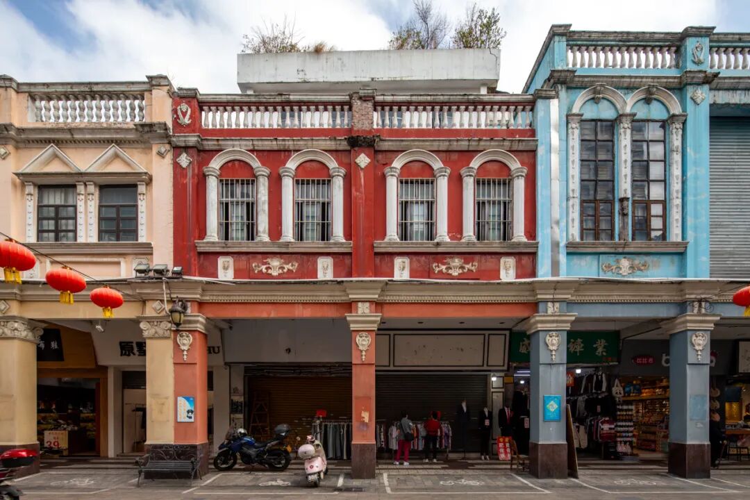 彩色的骑楼映着青石板路