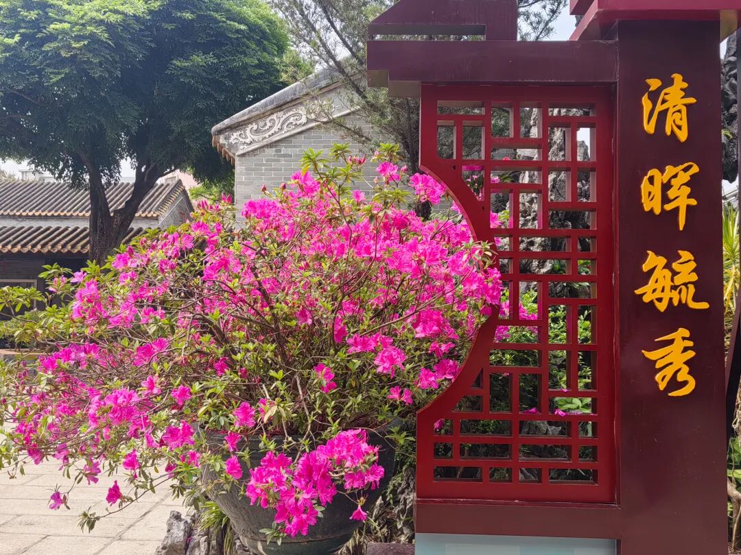 清晖园的朱红廊柱与青绿树缠绵