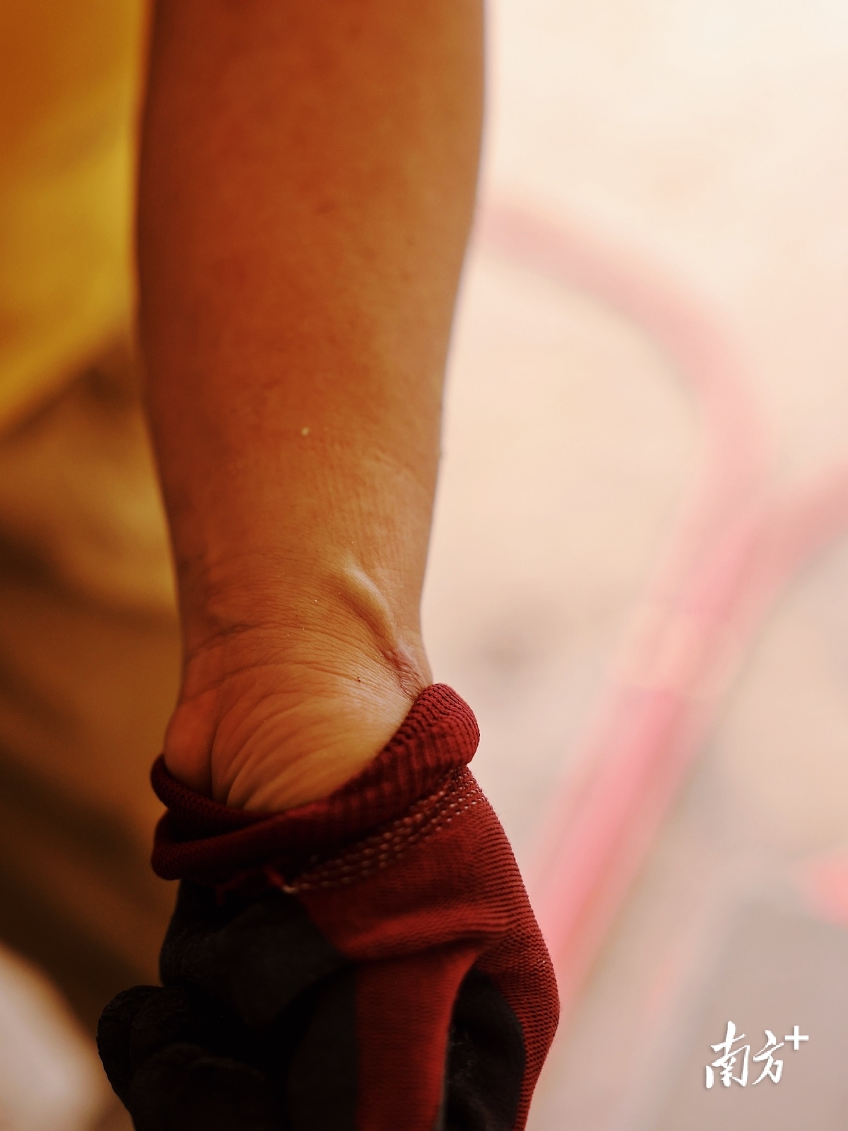魏云桂小臂上因常年用力而凸起的青筋。
