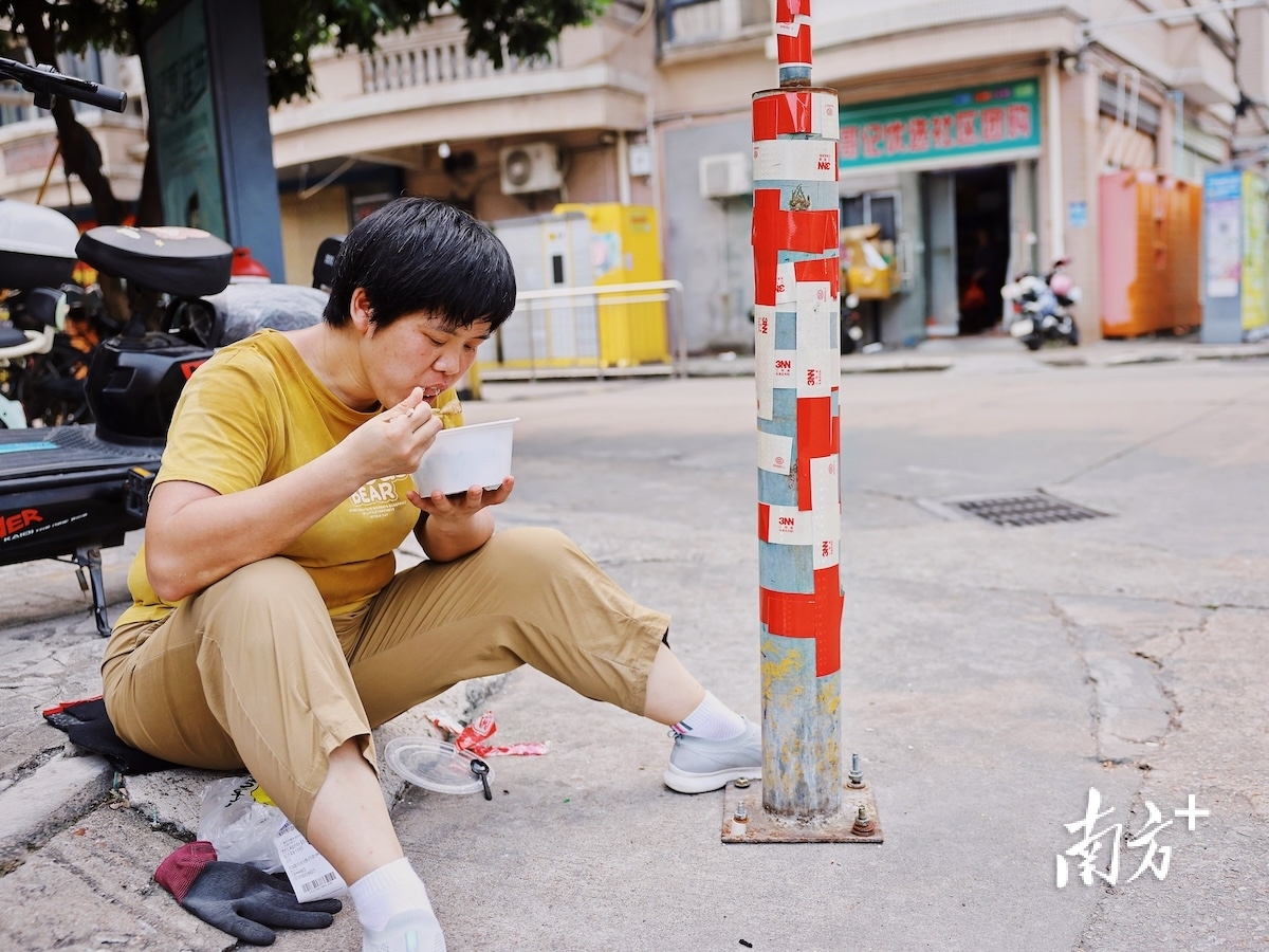 下午二时许,魏云桂在工作间隙快速解决午饭。