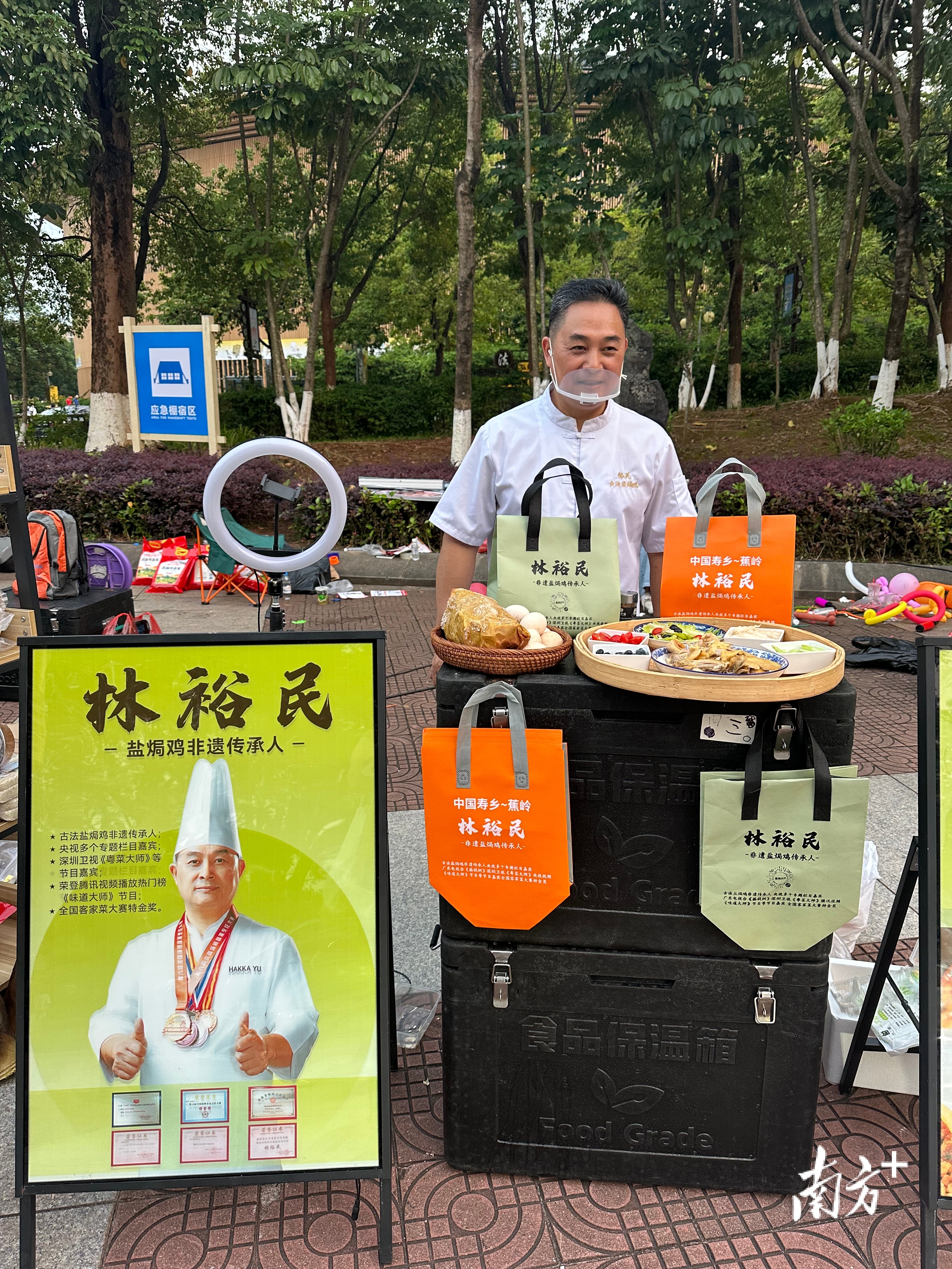 “今天五点多摆上来已经卖了好几只了,都是外地过来看球的,品尝后觉得味道不错就买了打算带回去!”林裕民作为蕉岭县第七批县级非遗(蕉岭古法盐焗鸡制作技艺)传承人,20多年坚守传统手工技艺,制作的盐焗鸡深受顾客的喜爱。
