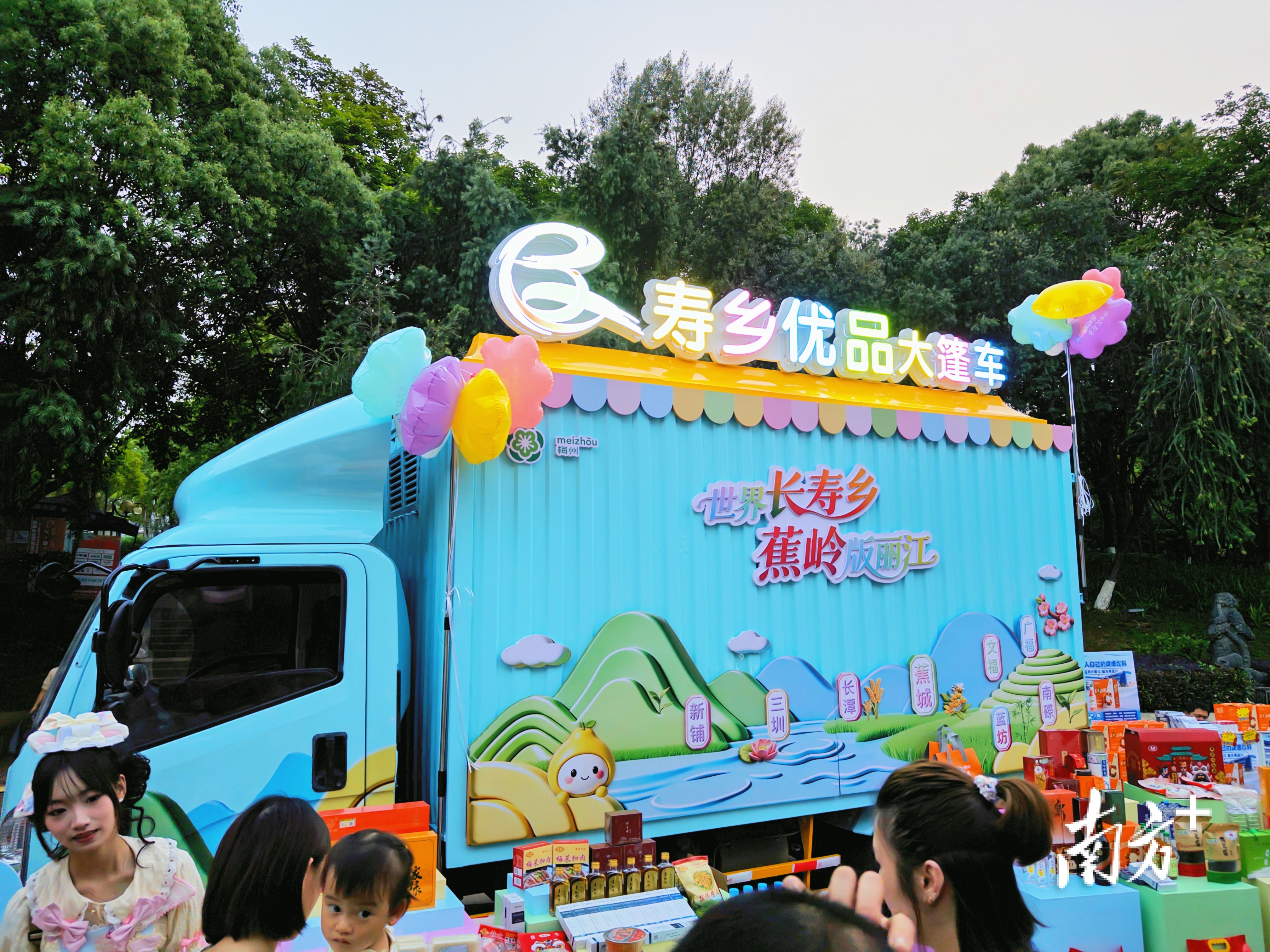 据悉,此次的蕉岭“寿乡优品大篷车”包括1辆大篷车和7辆小型展示车,组成“七星伴月”大篷车队,一字排开。一瓶水、一杯茶、一粒米、一颗笋、一瓶蜜——蕉岭五大富硒长寿食品集中亮相,还有非遗美味蕉岭三及第。