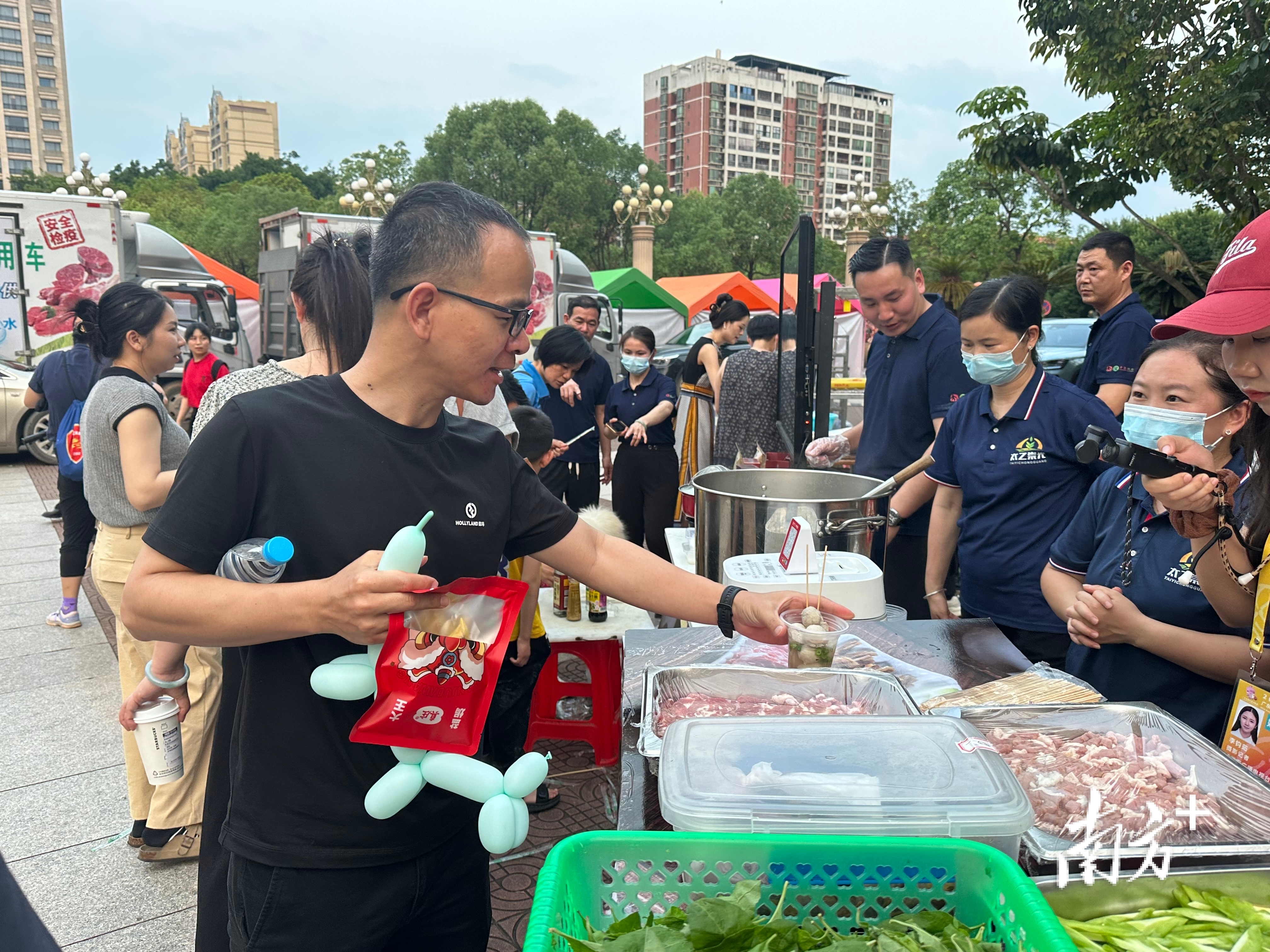 比赛还未开始,人气已经聚集。现场手擀饺子皮包饺子、热气腾腾的肉丸汤、咸香的手撕盐焗鸡、氤氲的蕉岭绿茶……蕉岭“寿乡优品大篷车”开到梅县文体中心梅州队主场外围,带观看比赛的群众一站式体验“世界长寿乡·蕉岭版丽江”的独特魅力!