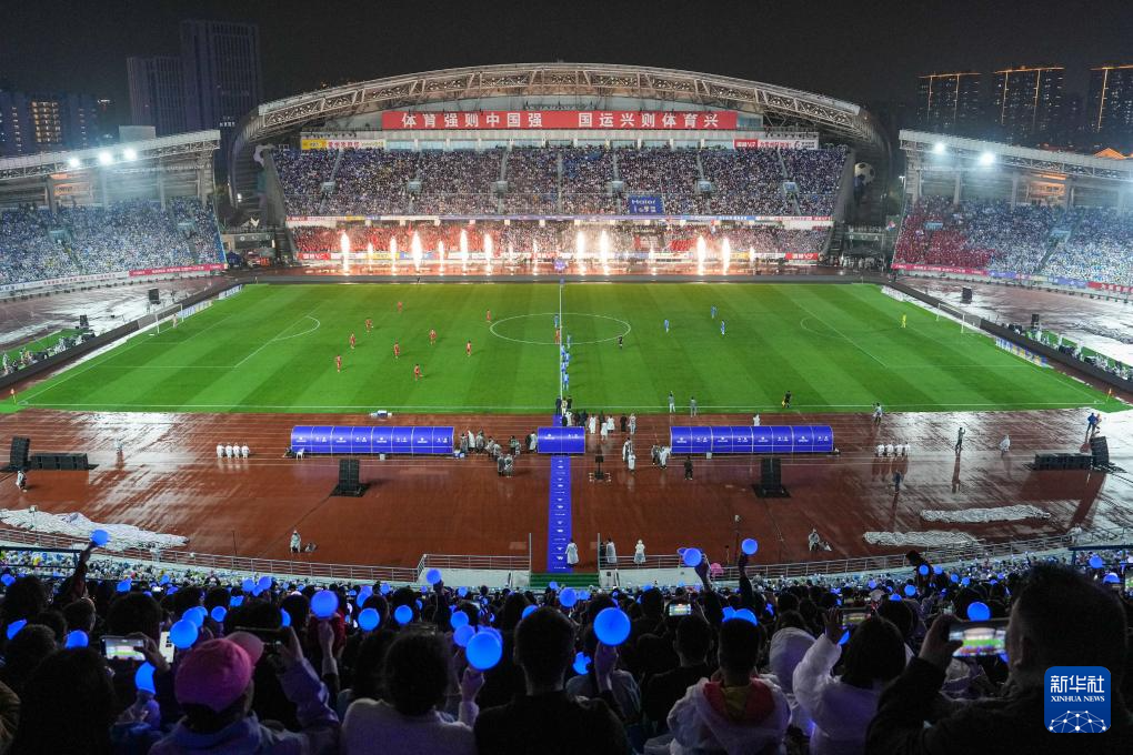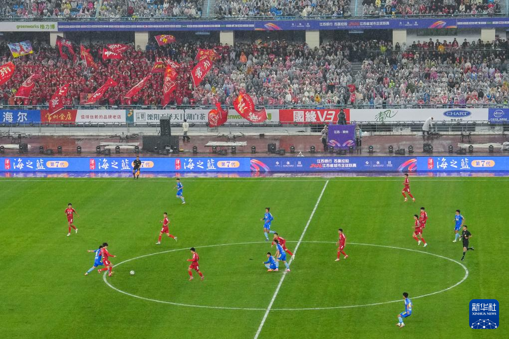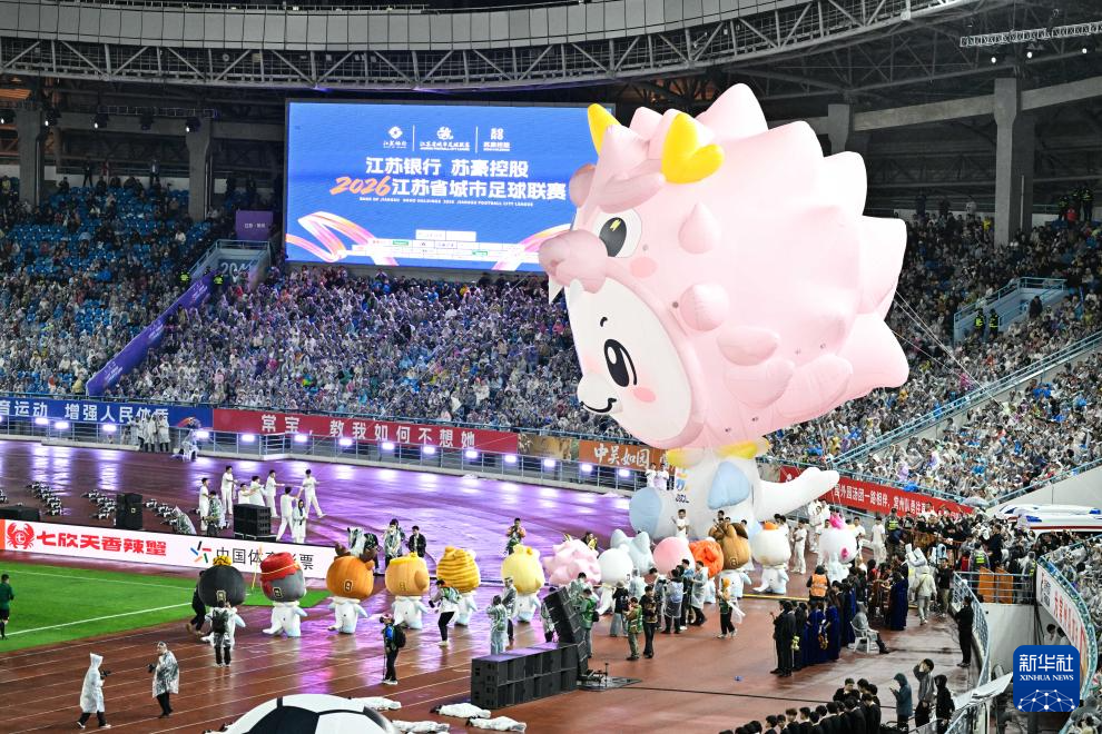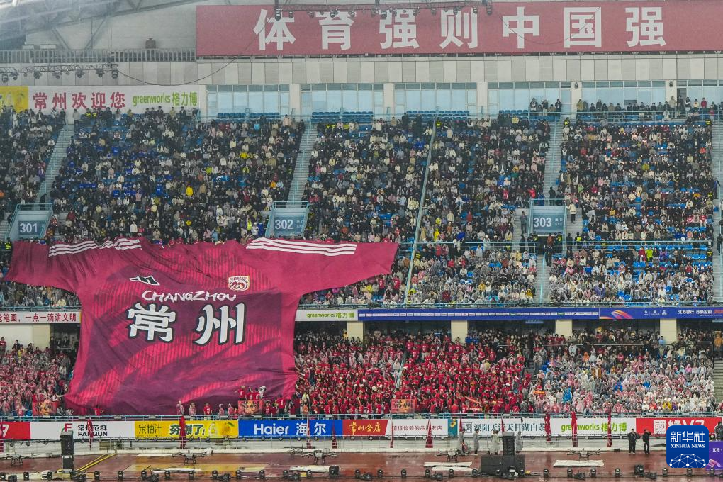 4月11日,2026江苏省城市足球联赛(简称“苏超”)揭幕战在常州奥体中心体育场举行,对阵双方为常州队和南通队。
