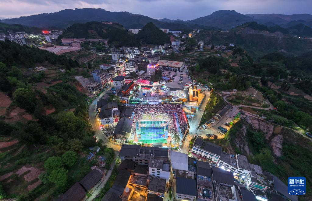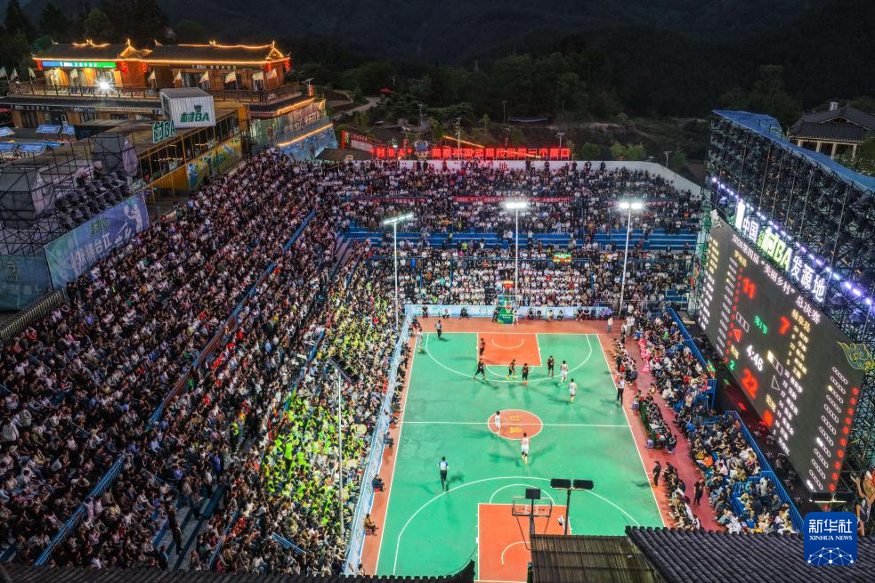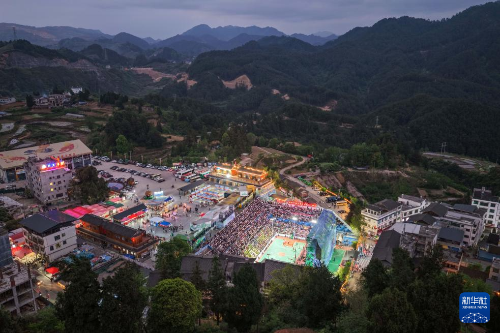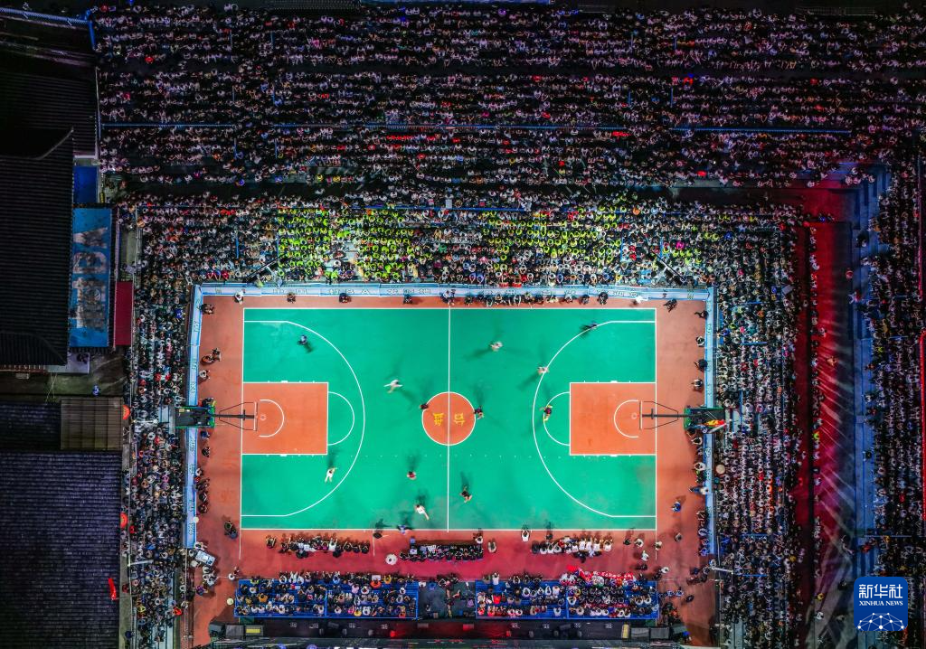 这是4月11日拍摄的贵州“村BA”总决赛现场(无人机照片)。
