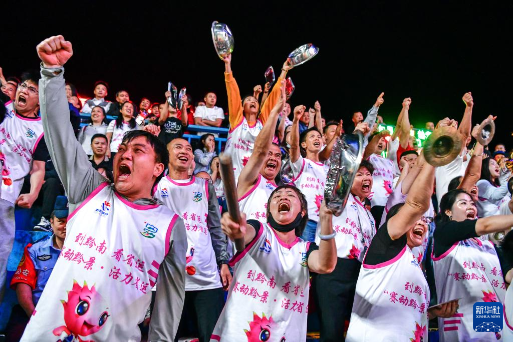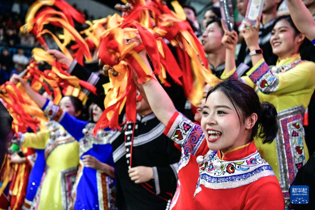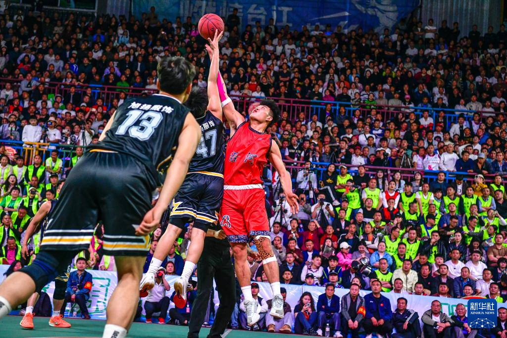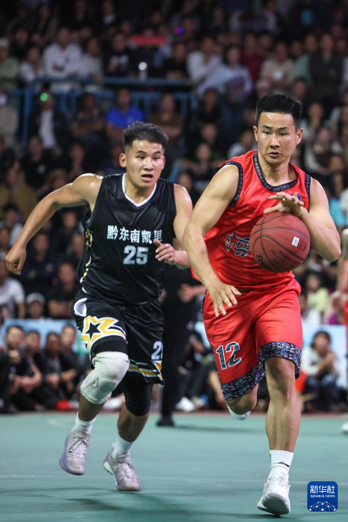 4月11日晚,在贵州省黔东南苗族侗族自治州台江县台盘乡举行的贵州省第四届“美丽乡村”篮球联赛(贵州“村BA”)总决赛中,凯里市代表队77比62战胜沿河县代表队,夺得冠军。