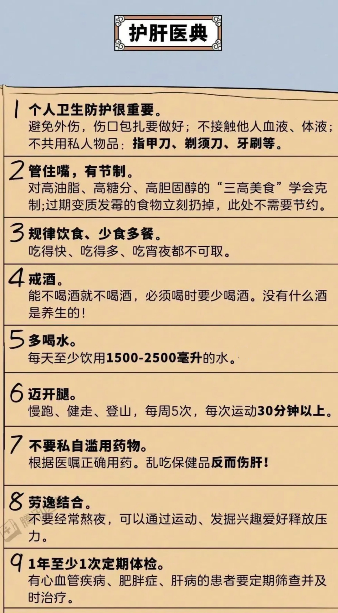 “他们家人都有肝炎,吃饭时离他们远一点!” 儿时,每当亲戚聚餐,妈妈都会在我的耳边小声这样说。 “他们”指的是远房姨妈一家。严肃的表情和话语,让我幼儿而懵懂的心顿时紧张起来。 而每当姨妈给我夹菜时,妈妈还会狠狠瞪她一眼。 “肝炎,很可怕吗?” “肝炎,有哪几种?” “肝炎会通过吃饭传染吗?” 当时,没有人告诉我这些问题的答案。 似乎,不去碰他们一家人吃饭的碗和喝水的杯子,就可以保证“安全”。 多年后我才知道,姨妈一家人都是乙肝病毒携带者。 不过,他们都经过了规范治疗,定期复查,早已不在活动期,几乎没有传染性。 而且,乙肝,实在不是“吃”出来的肝炎呀! 今天,我们就来了解一下各种病毒性肝炎的知识。 最常见的病毒性肝炎,是这“五兄弟”——甲肝(大哥)、乙肝(二弟)、丙肝(三弟)、丁肝(四弟)和戊肝(五弟)。 其中,甲肝病毒和戊肝病毒,是通过“粪-口”途径传播的。 什么叫“粪-口”途径(听上去似乎有点恶心)? 就是吃!得!不!干!净! 甲肝和戊肝病毒一般存在于感染者的唾液、呕吐物和粪便中,会污染食物、餐具和水。 所以,它俩才是“吃出来”的肝炎(其他肝炎:我不背锅!) 可能有的人还记得,在1988年,短短几十天里,上海市30多万人出现了有症状的甲肝病毒感染。 医院爆满,不得不在部分单位搭设临时病床。 导致这场疫情的,是受到污染的一种水产品——“毛蚶”(时至今日依然禁售)。 好在,甲肝和戊肝病毒一般只造成急性的感染,来得快,去得也快。 这两种肝炎通常可以自愈,一般不会引起慢性肝炎和肝癌。 除了无症状感染者,常见的症状为:发热、怕冷、食欲不振、恶心、呕吐等,可伴有疲倦、褐色尿、肝肿大及肝功能异常,部分患者会出现黄疸。 顺便提一句:戊肝并不是一个不起眼的“小弟”。 我国戊肝的报告发病数已连续10年、死亡率连续15年让甲肝“肝”拜下风! 据估计,全球有三分之一的人口曾经感染过戊肝病毒。 总之,“不干不净”,吃了可不一定没病! 根据世界卫生组织估计,截至2019年,全球有近3亿慢性乙肝患者。 我国一直是乙肝大国。目前,慢性乙肝病毒感染者约为8600万例。 乙肝病毒的传播途径是这三种:分娩时母婴传播、血和血液制品传播、性接触传播。 在日常生活中,一个人不会通过共用餐具、拥抱、握手、亲吻等无血液暴露的方式而感染乙肝病毒。 人感染乙肝病毒后,如果没有足够的免疫力,也没有得到及时、规范、有效的治疗,那么会导致慢性肝炎,逐步发展为肝硬化,甚至肝癌。 (感染乙肝病毒后的“进展三部曲”) 上世界90年代起,我国开始推广乙肝疫苗(需自费接种); 从2002年开始,乙肝疫苗被纳入计划免疫,新生儿免费接种,成为大多数人的“人生第一针”。 之后,我国5岁以下儿童乙肝病毒表面抗原阳性率,从2002年的9.76%下降到2014年的0.32%,下降约97%。 世界卫生组织认为,我国的乙肝防治工作,是全球公共卫生领域取得的“伟大成就”。 成年人如果发现自己是“无应答者”(即乙肝表面抗体<10mIU/mL),可以接种3剂(按0、1、6月的程序,20ug/剂)或1剂(60ug/剂)乙肝疫苗。 如果依然“无应答”,可以再次加强接种。 丙肝(不是饼干!)的传播方式主要是血液接触,通过性和母婴传播比较少见。 不过,丙肝往往被称为“沉默的杀手”。 这是因为,它在发病的初期往往症状不明显,一旦感觉到了“症状”,大多已经进展为终末期肝病,甚至肝癌。 近年来,我国丙肝的发病呈上升趋势。每年丙肝报告发病数均超过20万例。 目前,丙肝可以通过口服小分子抗病毒药物治疗,完全有可能治愈。 丁肝病毒很独特,也很“懦弱”。 虽然它也主要是通过血液、母婴和性途径传播,但它一般无法单独造成感染。 就是说,你很难“只”得丁肝。 它是乙肝病毒的“小跟班”,跟在乙肝病毒后面“打打杀杀”,负责扩大乙肝病毒的伤害。 不过,也不要轻视它——研究表明,当乙肝病毒合并丁肝病毒感染时,发生肝癌的风险比单纯感染乙肝病毒高出2至8倍。 首先,接种疫苗,可以有效预防乙肝、甲肝和戊肝这三种病毒性肝炎。 对于“吃出来”的肝炎(甲肝&戊肝),我们要注意饮食卫生,使用干净餐具,不喝生水,不吃生肉,海鲜也最好煮熟后再吃。 对于乙肝、丙肝和丁肝,不仅要避免在不正规的地方进行不规范的输血、美容、文身等操作,在性生活时也要注意采取安全措施。 最后,“肝炎病毒五兄弟”只是导致肝脏疾病的原因之一。 长期大量饮酒、脂肪肝、药物损伤等,也会对肝脏造成损害,甚至引起肝功能衰竭和肝癌。 最后,典哥送上一份护肝宝典,希望大家能够遵守,保护自己的“小心肝”! 审稿专家:蒋卫民 复旦大学附属华山医院感染科主任医师 参考文献 1.上海疾控.https://mp.weixin.qq.com/s/K28_OXZfPml-RFKbsf5eCQ 2.黄澳迪,唐林,王晓琪,刘倩倩,杨宏,温宁,尹遵栋,王富珍.中国2011-2021年戊型病毒性肝炎发病趋势和时空聚集性[J].中国疫苗和免疫,2022,28(04):417-421. 3.Global progress report on HIV, viral hepatitis and sexuallytransmitted infections,2021.https: //apps. who.int/iris/bitstream/handle/10665/342808/9789240030985-eng.pdf. 4.Cui F,Shen L, Li L, et al. Prevention of chronic hepatitis B after3 decades of escalating vaccination policy, China[J]. Emerg InfectDis,2017,23(5):765-772. D01:10.3201/eid2305.161477. 5.https://www.gov.cn/xinwen/2021-07/25/content_5627248.htm 6.中华医学会肝病学分会, 中华医学会感染病学分会. 慢性乙型肝炎防治指南(2022