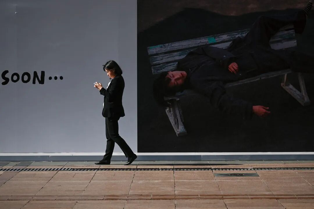 2024年10月23日,北京。一名穿职业正装的女子从商业街的广告海报前走过。(图 /CFP)