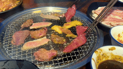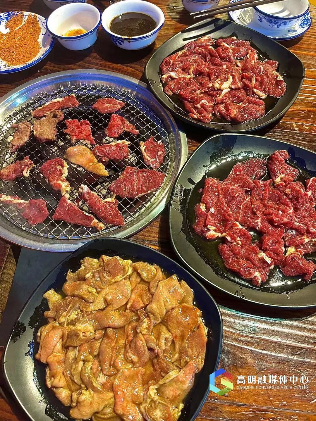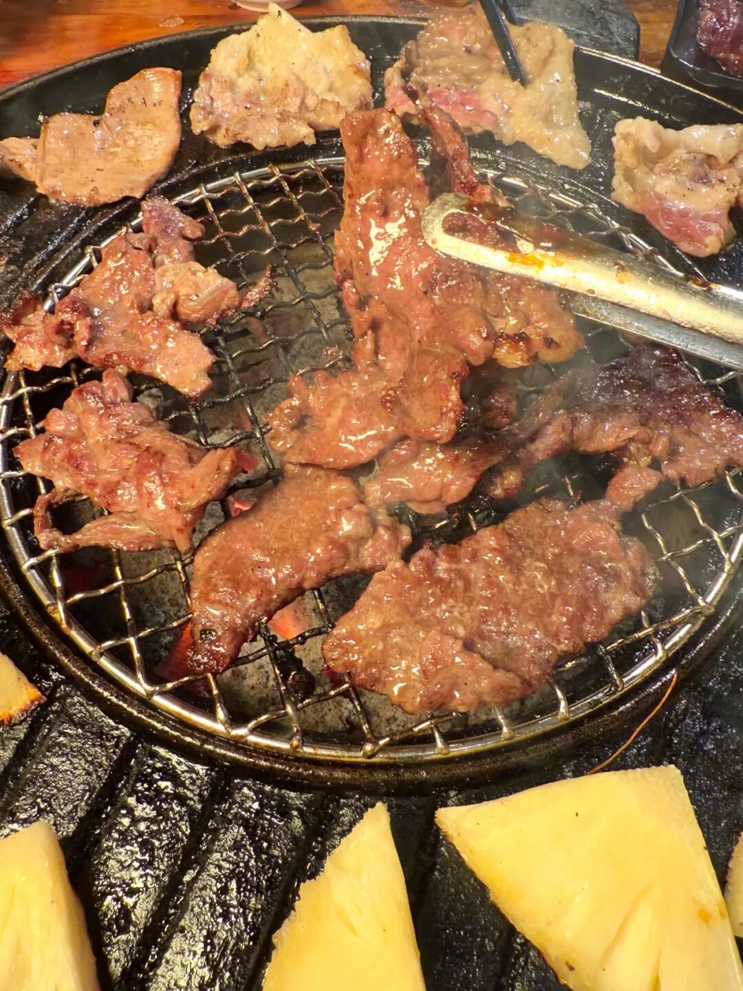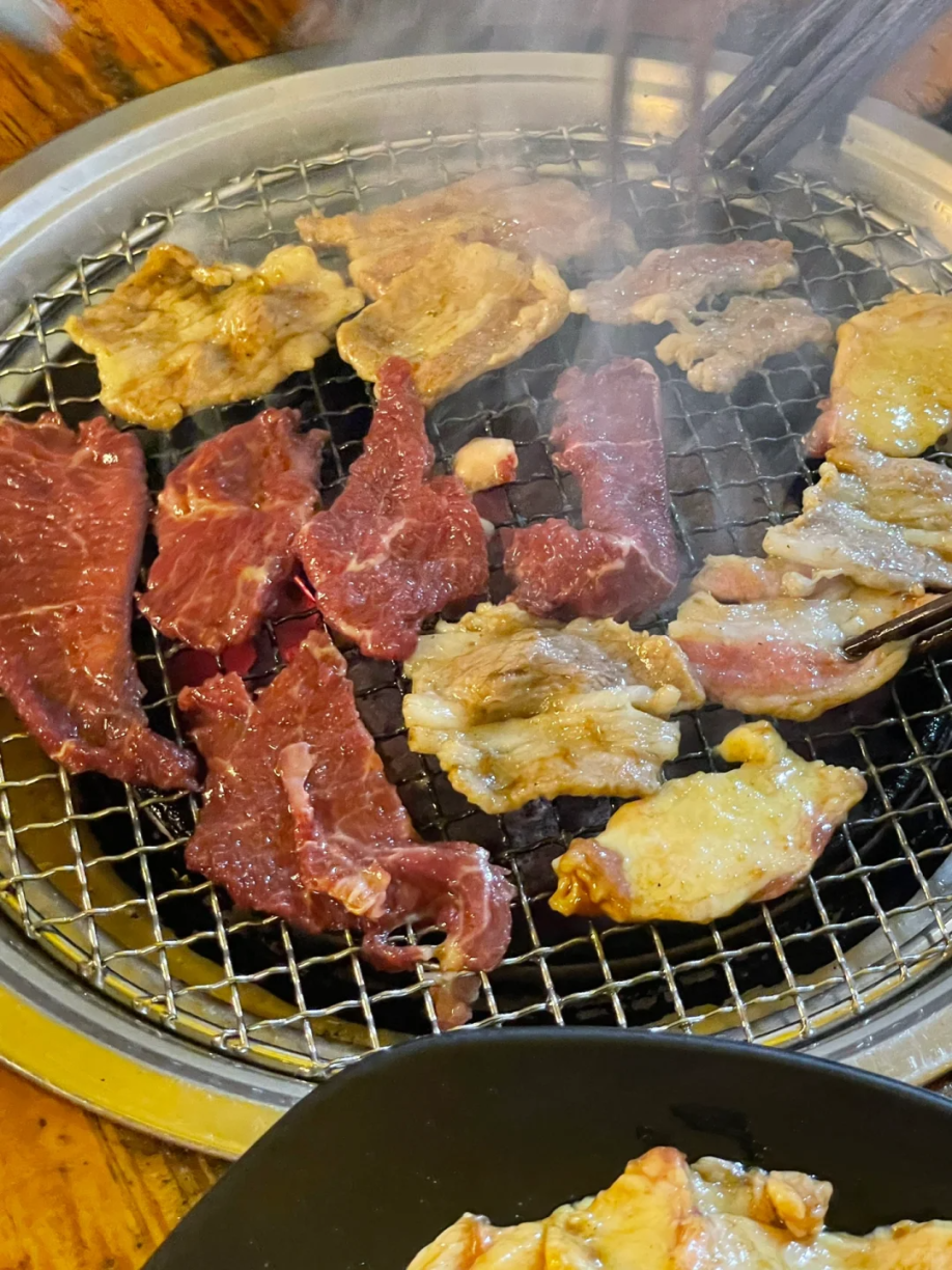 炭烤/铁板鲜牛肉,外皮焦香、内里爆汁,搭配秘制酱料,裹上生菜或紫苏叶,一口封神