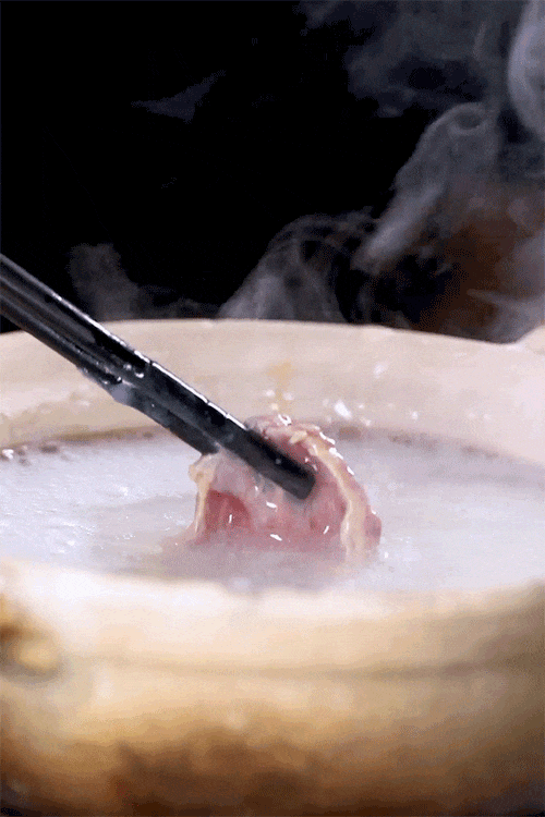 牛肉粥底火锅+油炸鬼的经典CP,绵密白粥做底,薄切鲜牛肉涮 3-5 秒即可,入口滑嫩鲜甜,原汁原味