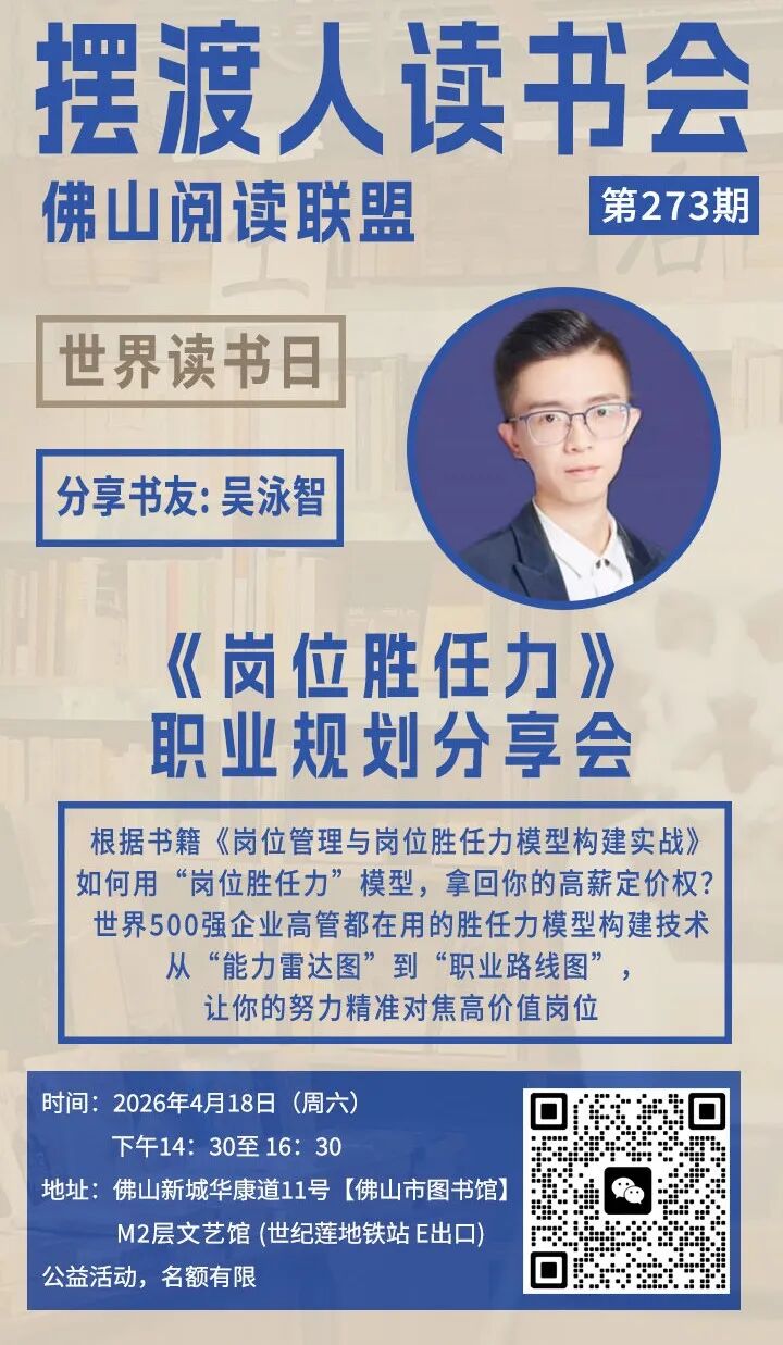《岗位胜任力》职业规划分享会 | 4月18日 (周六) 14:30-16:30 | 佛山市图书馆主馆 M2层文艺馆 |