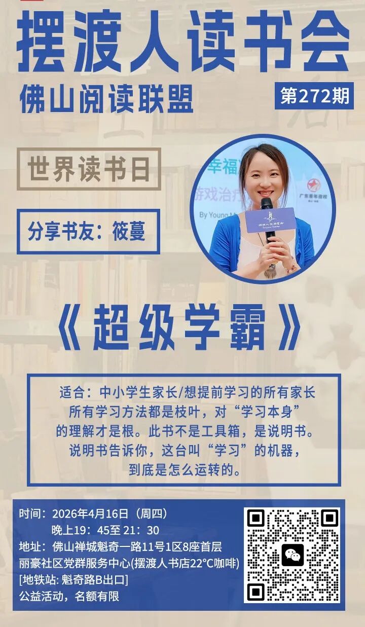 《超级学霸》分享会 | 4月16日 (周四) 19:45-21:30 | 丽豪社区党群服务中心 (摆渡人书店22℃咖啡) |