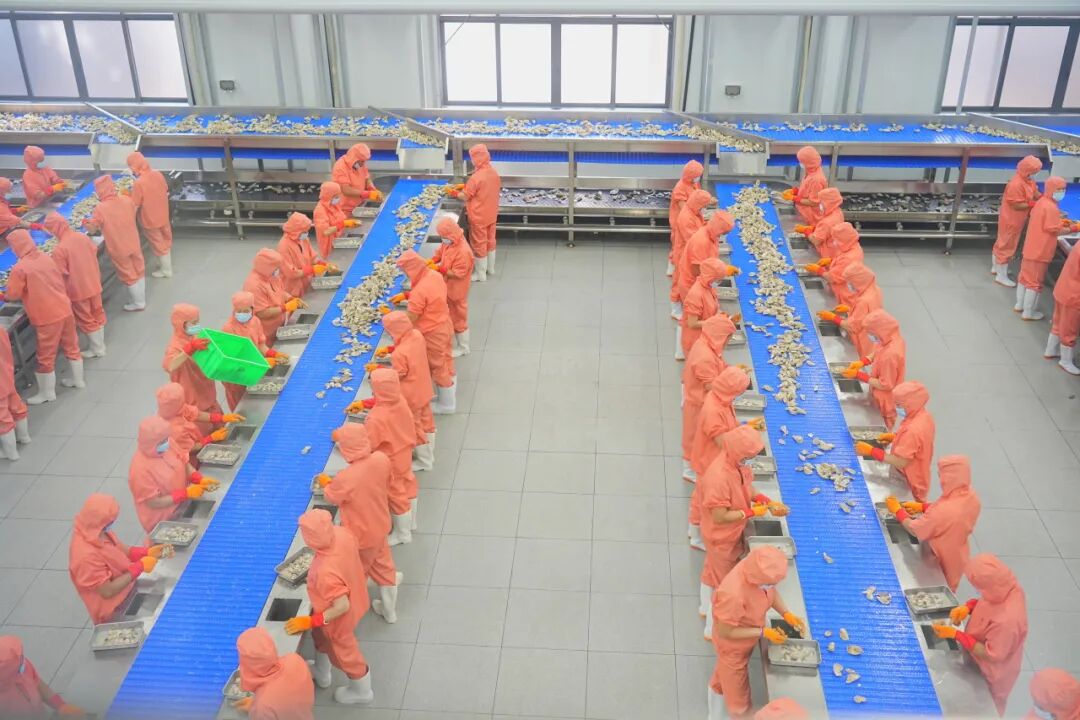 清晨捕捞的生蚝,当天就送入车间,全程低温快速完成开壳,鲜度保存得恰到好处,几乎闻不到过去那股腥味;规范的流水线也让品质更有保障。